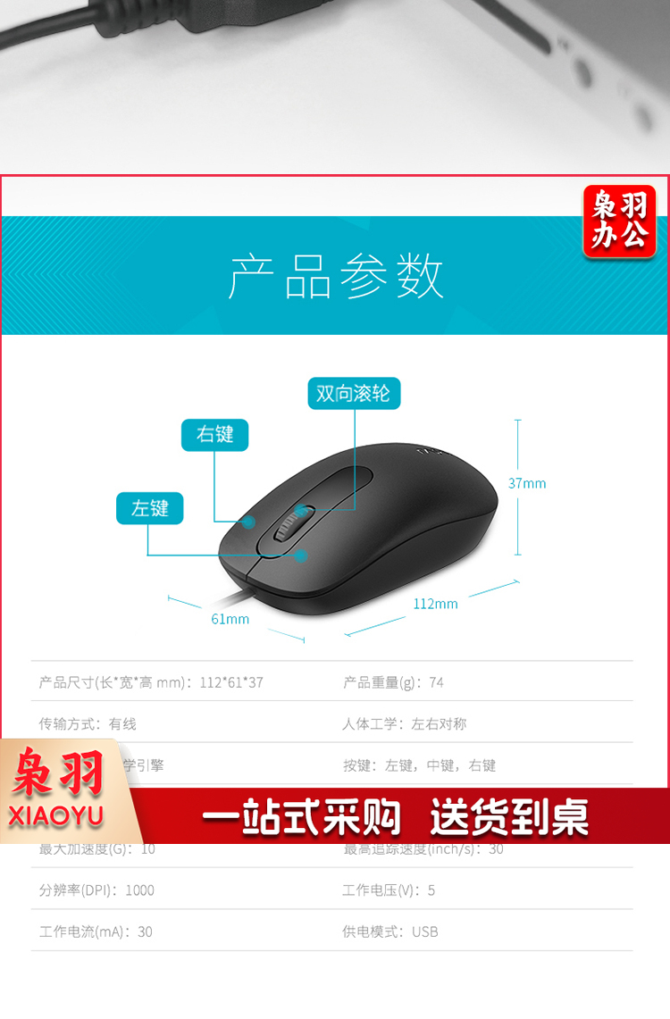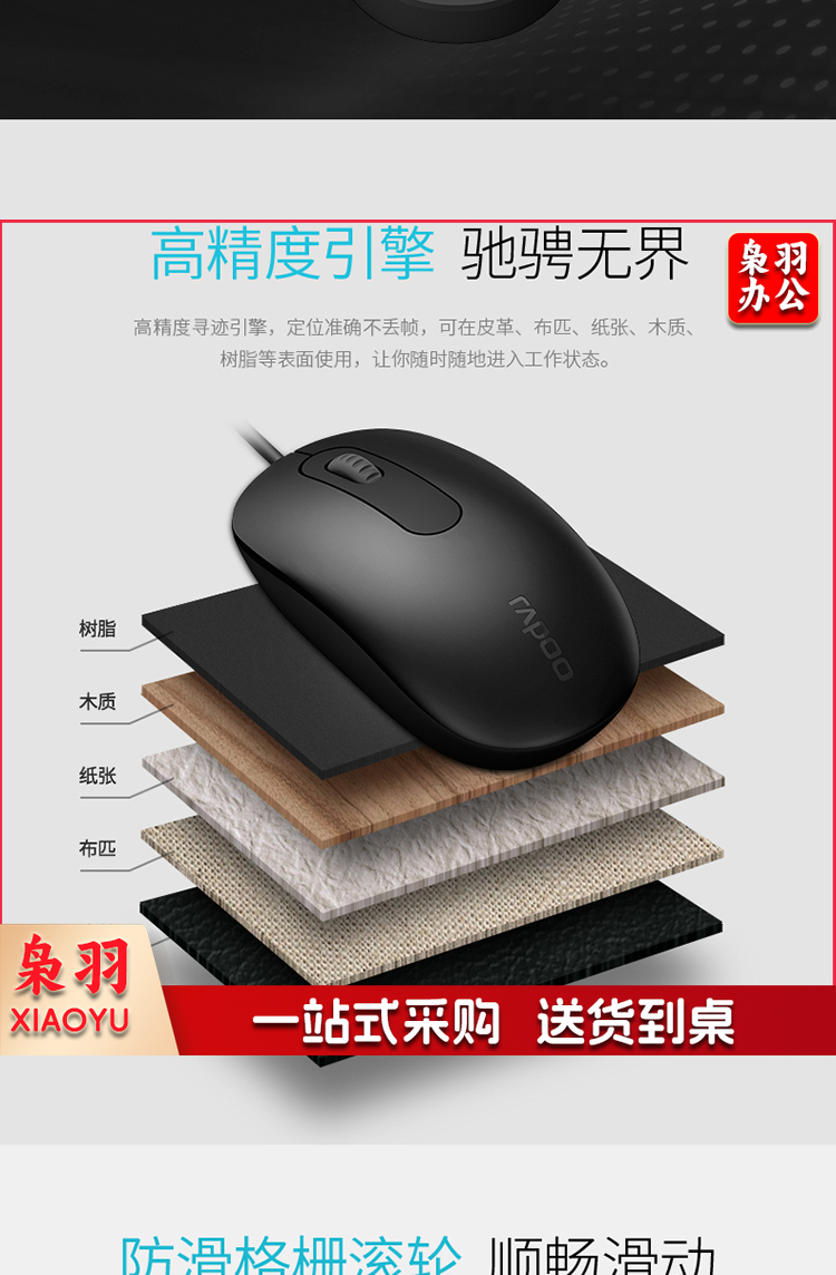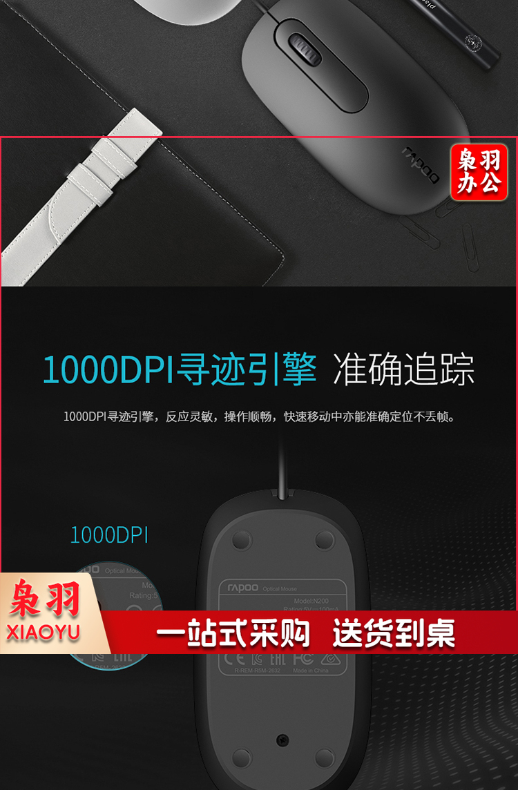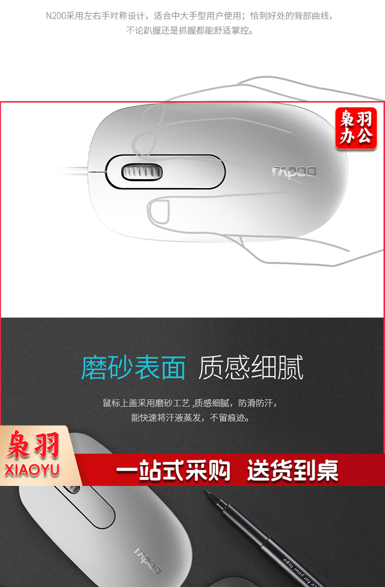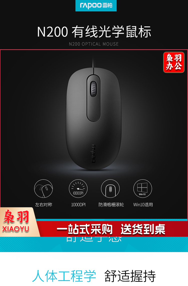 雷柏/RAPOO N200 有线鼠标 黑 单位:个