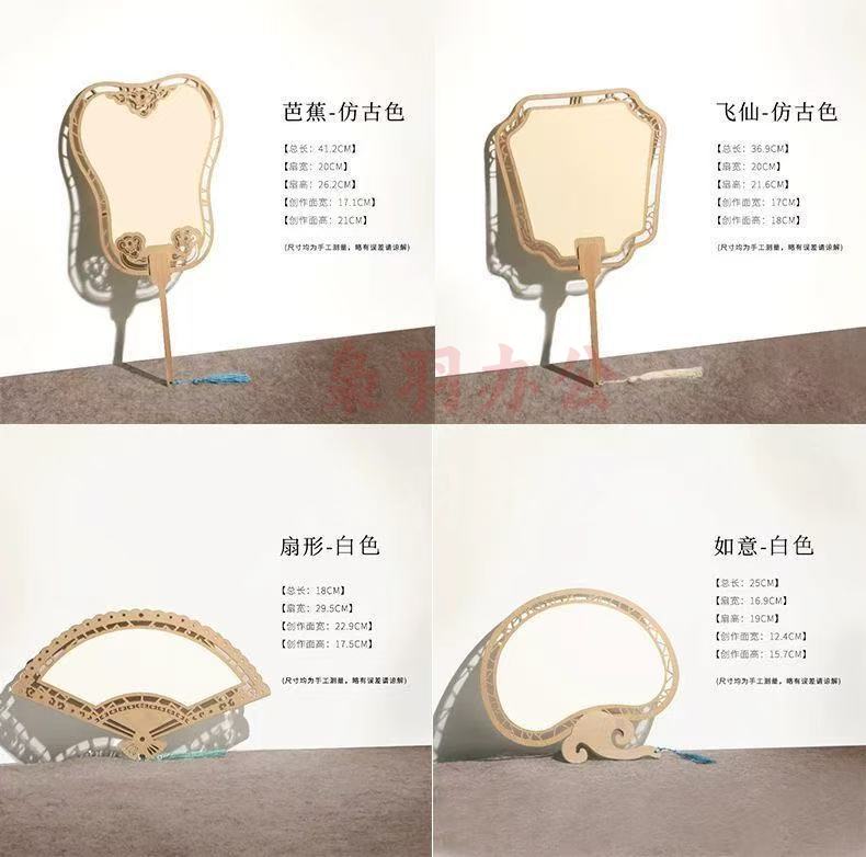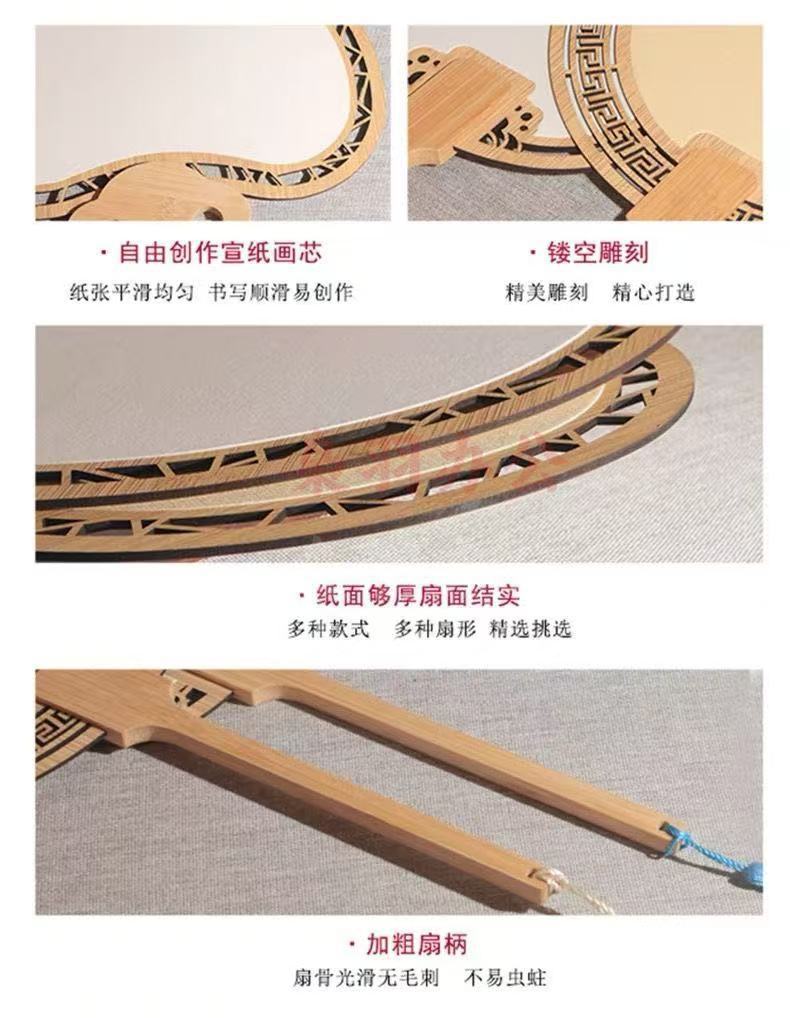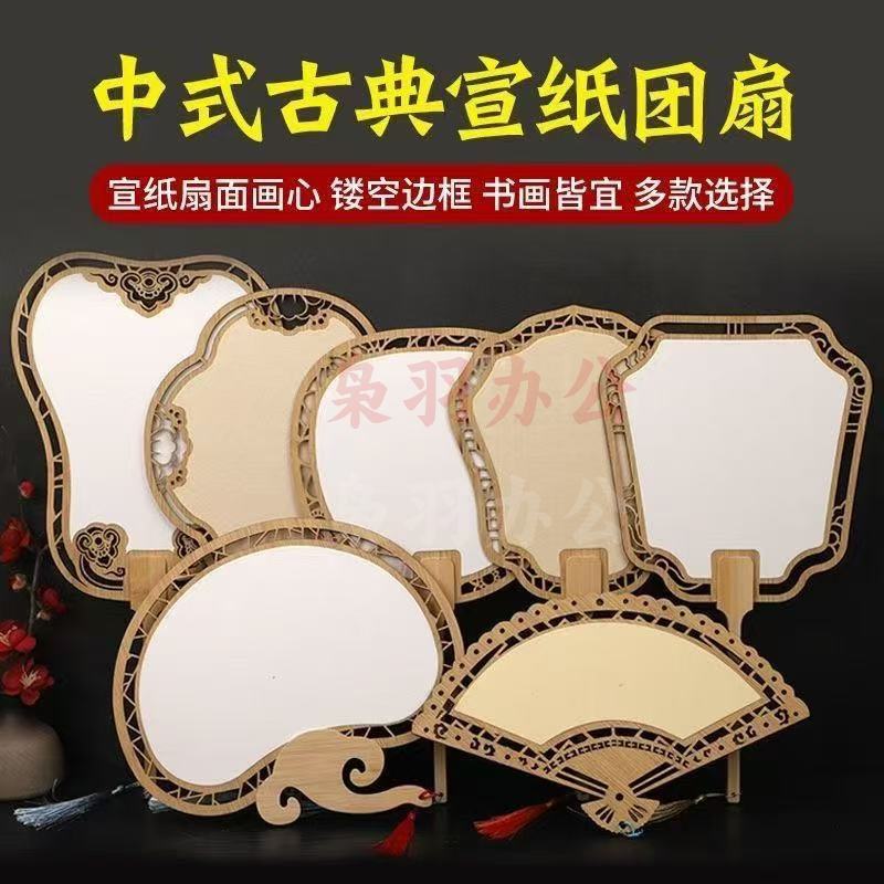 高档新款diy宣纸扇空白木质镂空宣纸团扇中国风古风国画书法扇子(10个起订)一个价格
