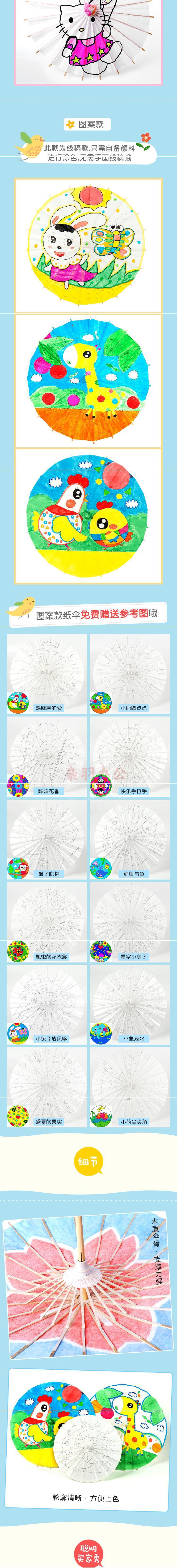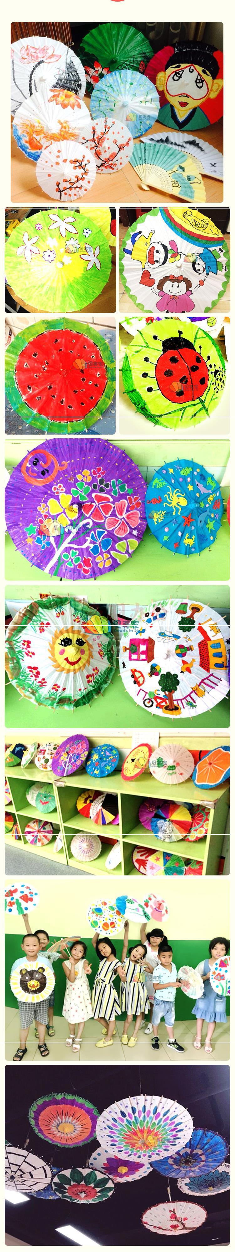 儿童空白油纸伞diy材料白色手工绘画伞幼儿园手绘小雨伞古风道具(空白纸伞【直径约40cm】-半穿-0cm