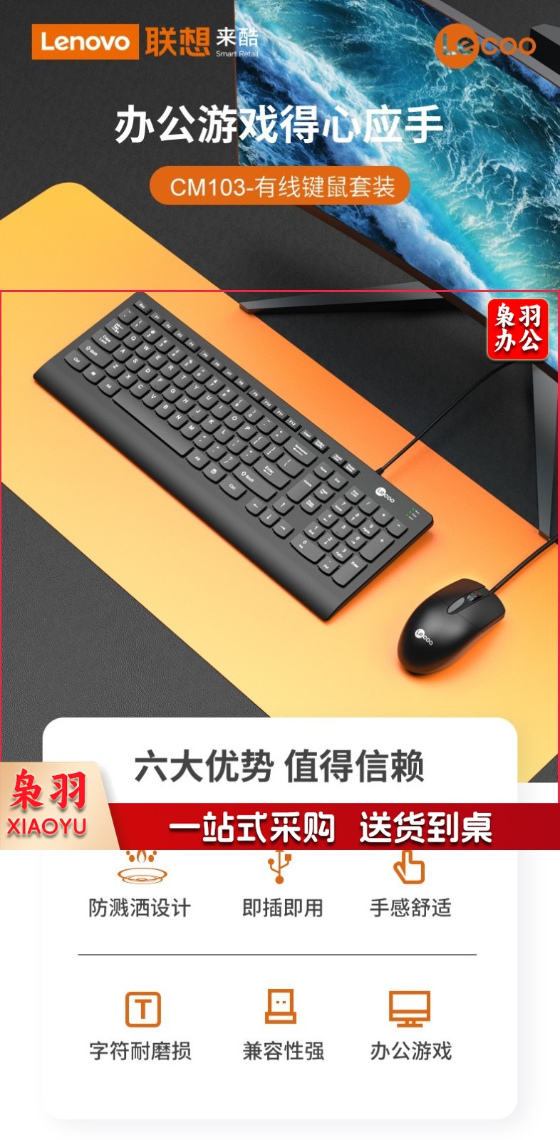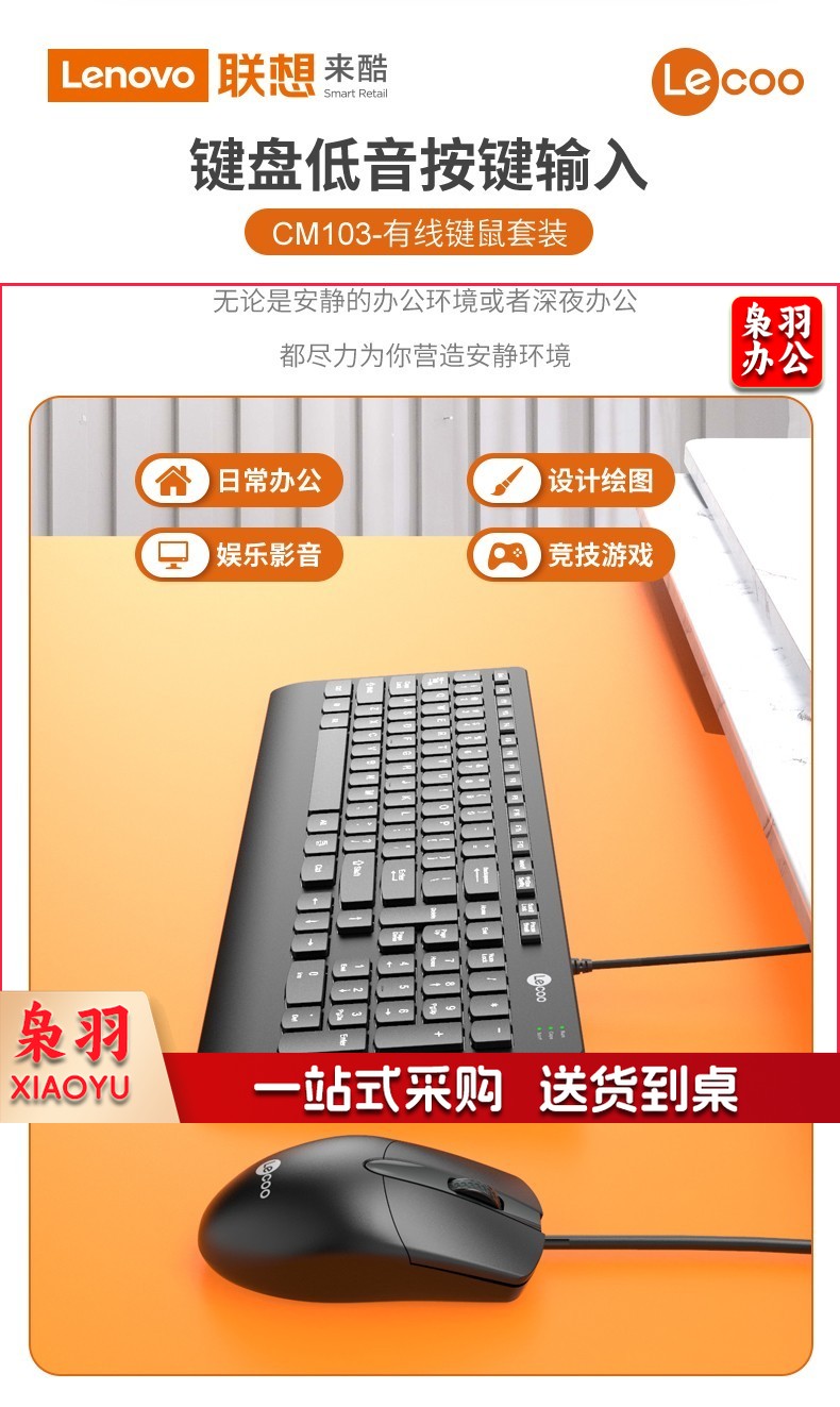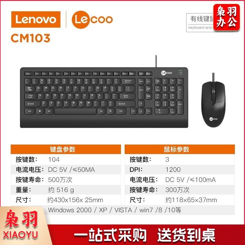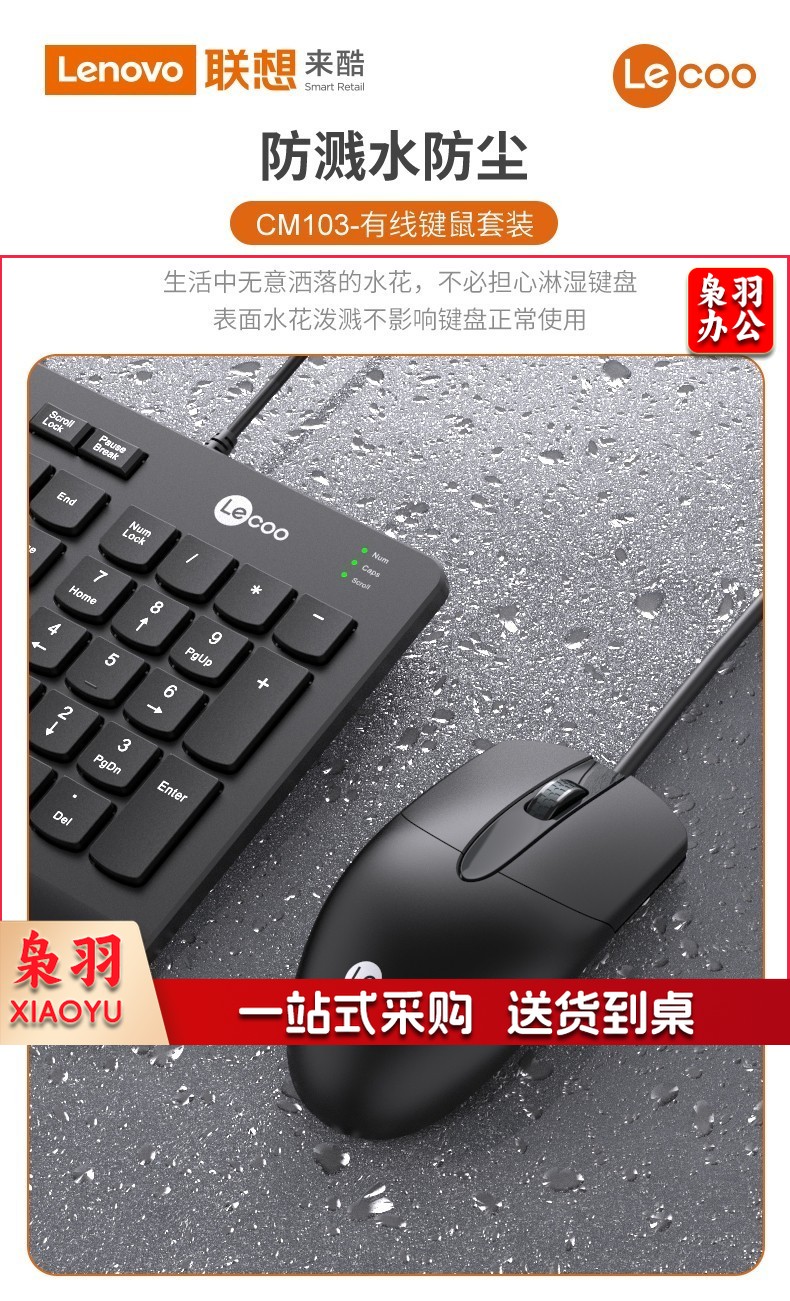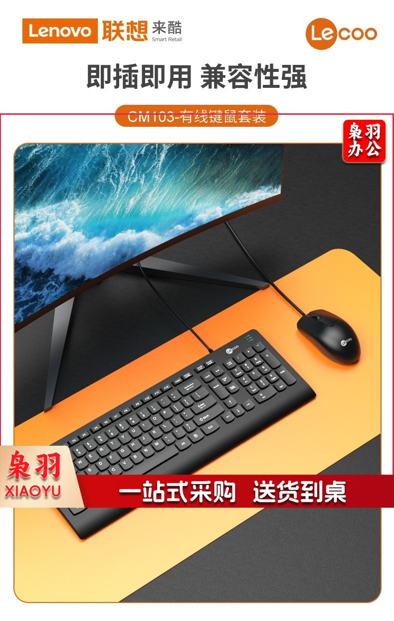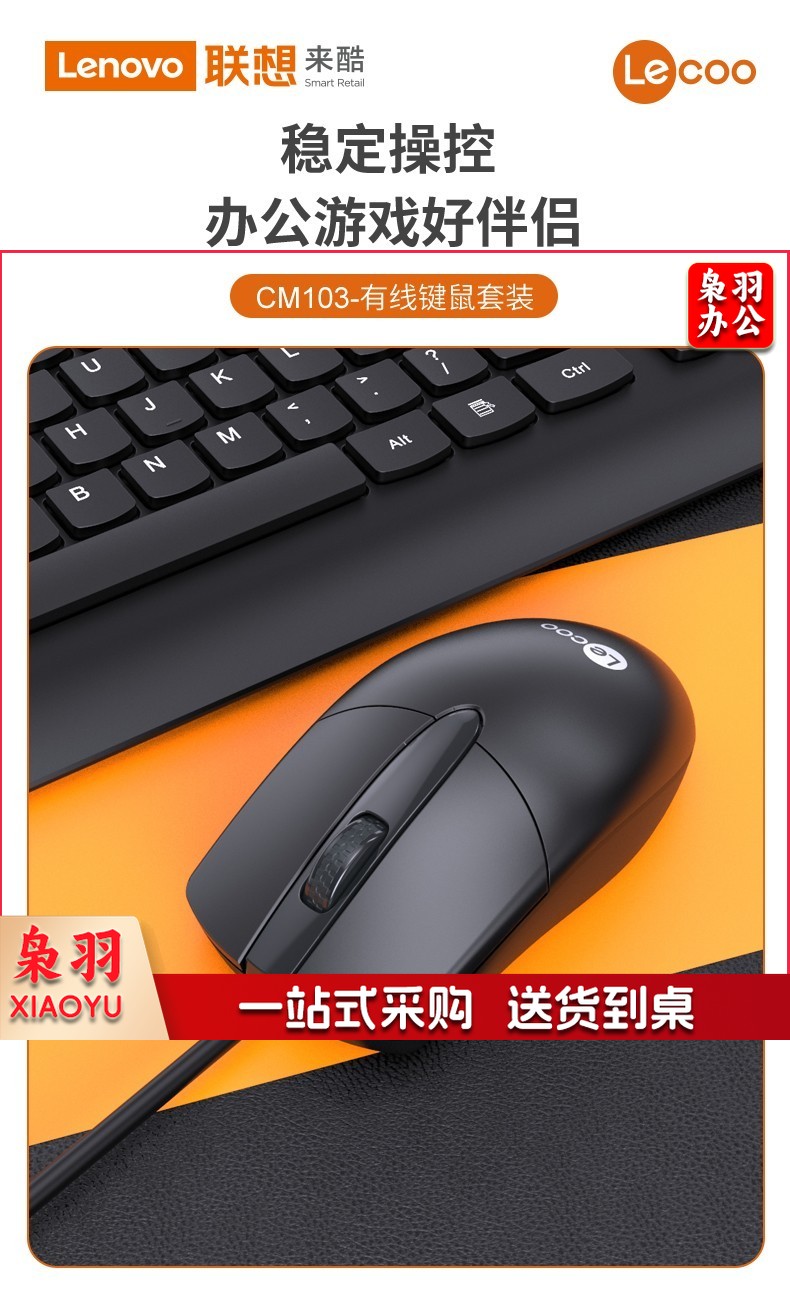 联想来酷CM103有线键鼠套装 商务办公打字专用笔记本外接USB接口电脑有线键盘鼠标 黑色有线键鼠套装 50个起购