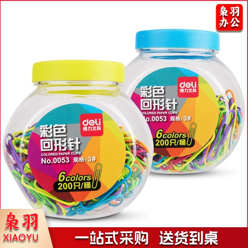 得力(deli) 0053 3#彩色防锈曲别针 200枚/桶