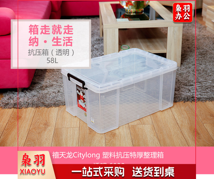 禧天龙(Citylong) 6032 58L 塑料收纳箱抗压储物箱环保特厚整理箱 透明