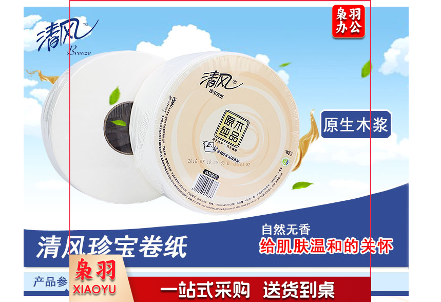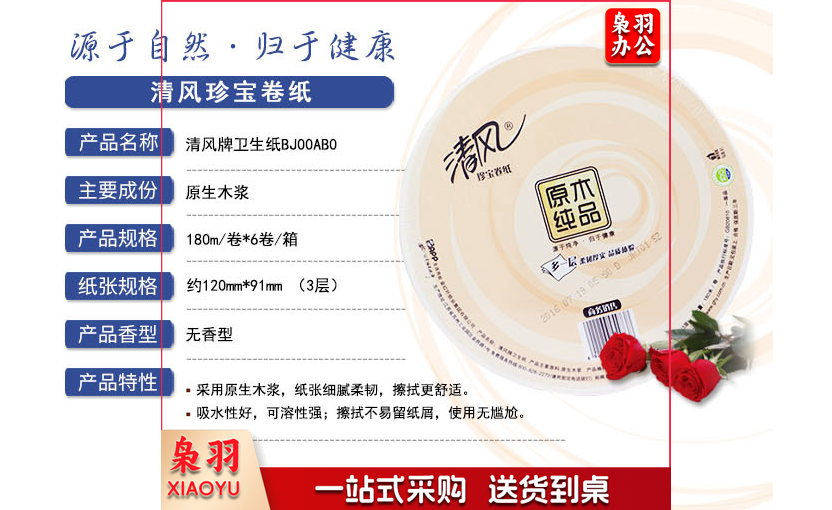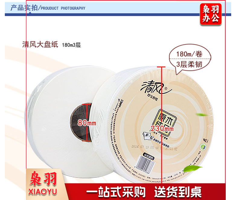 清风大卷纸3层180米*6卷商务大盘纸三层卫生纸厕所用纸手纸巾BJ00ABO