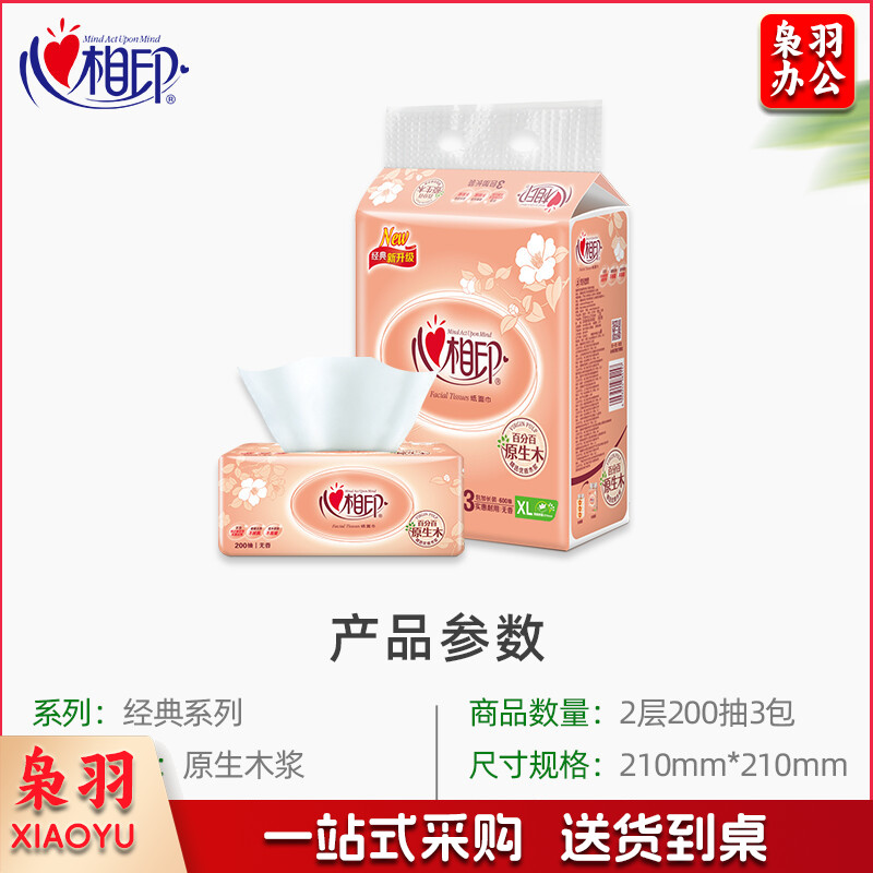心相印抽纸 经典系列 XL码2层200抽*3包 纸巾210mm*210mm 3包/提