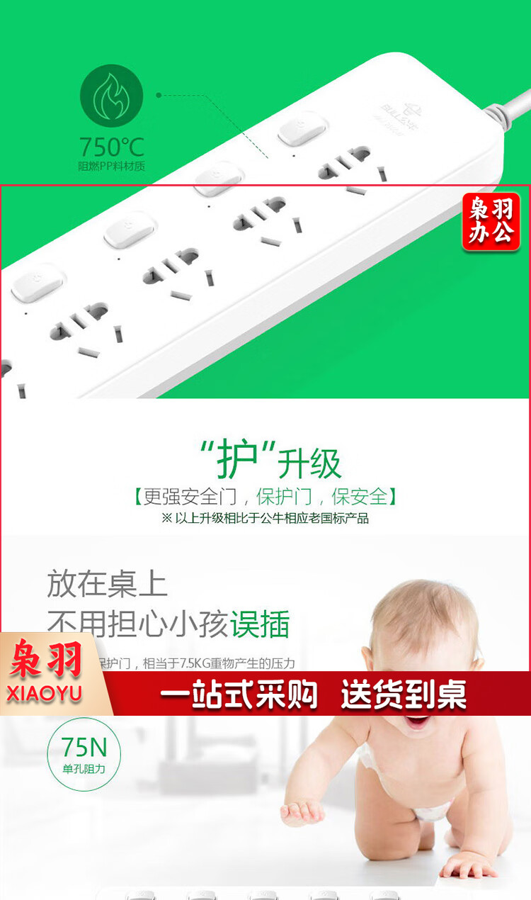 公牛(BULL)GN-312 插座/插线板/插排/排插/接线板/拖线板 超功率保护插座 5位分控全长5米