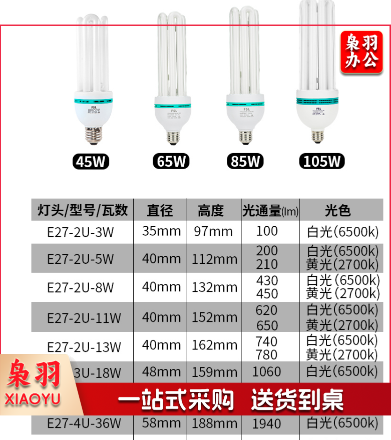 佛山 T4电子节能灯 8W(2U)E27/6500K 白光