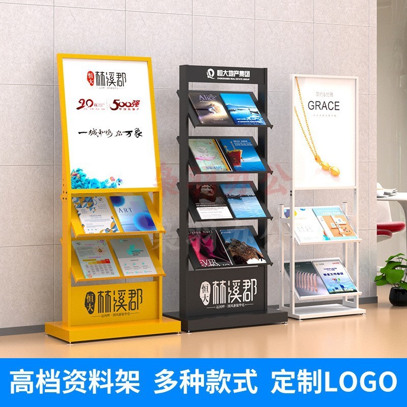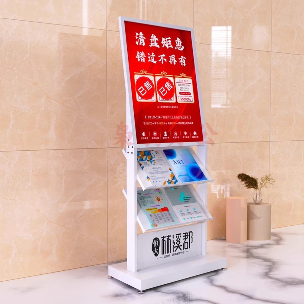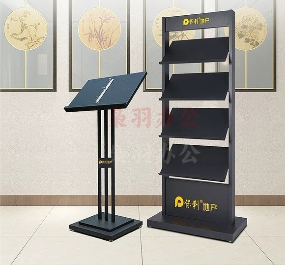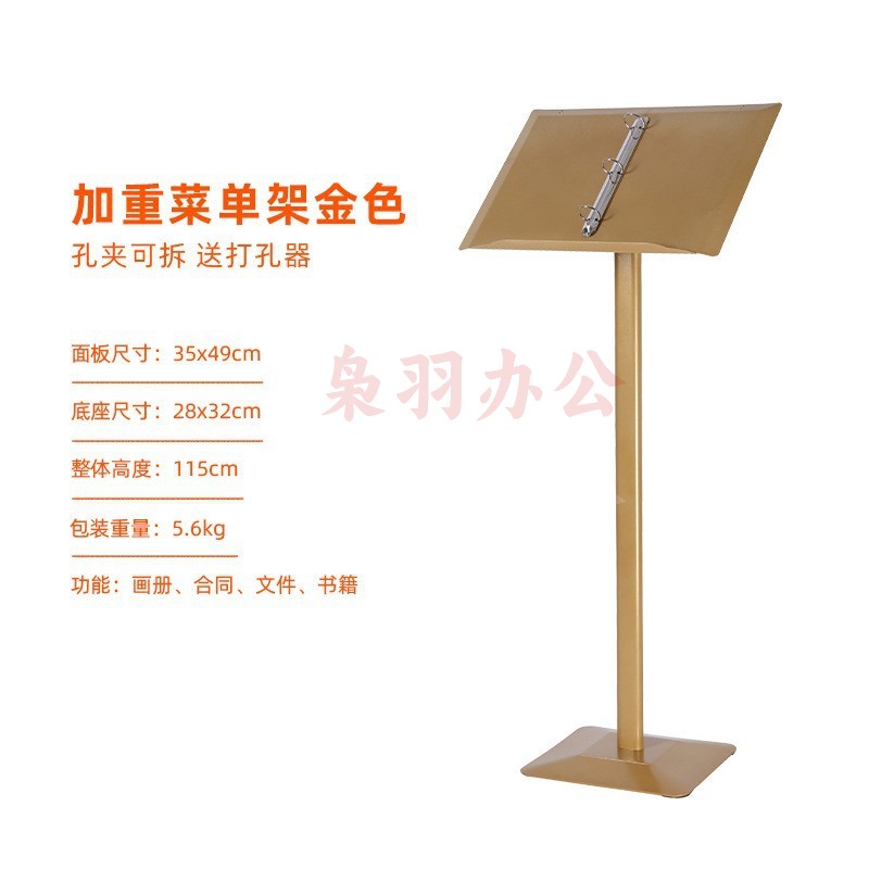 单柱金色 115*35*49金 落地售楼部合同活页架餐饮菜单翻页架子可以印logo资料架