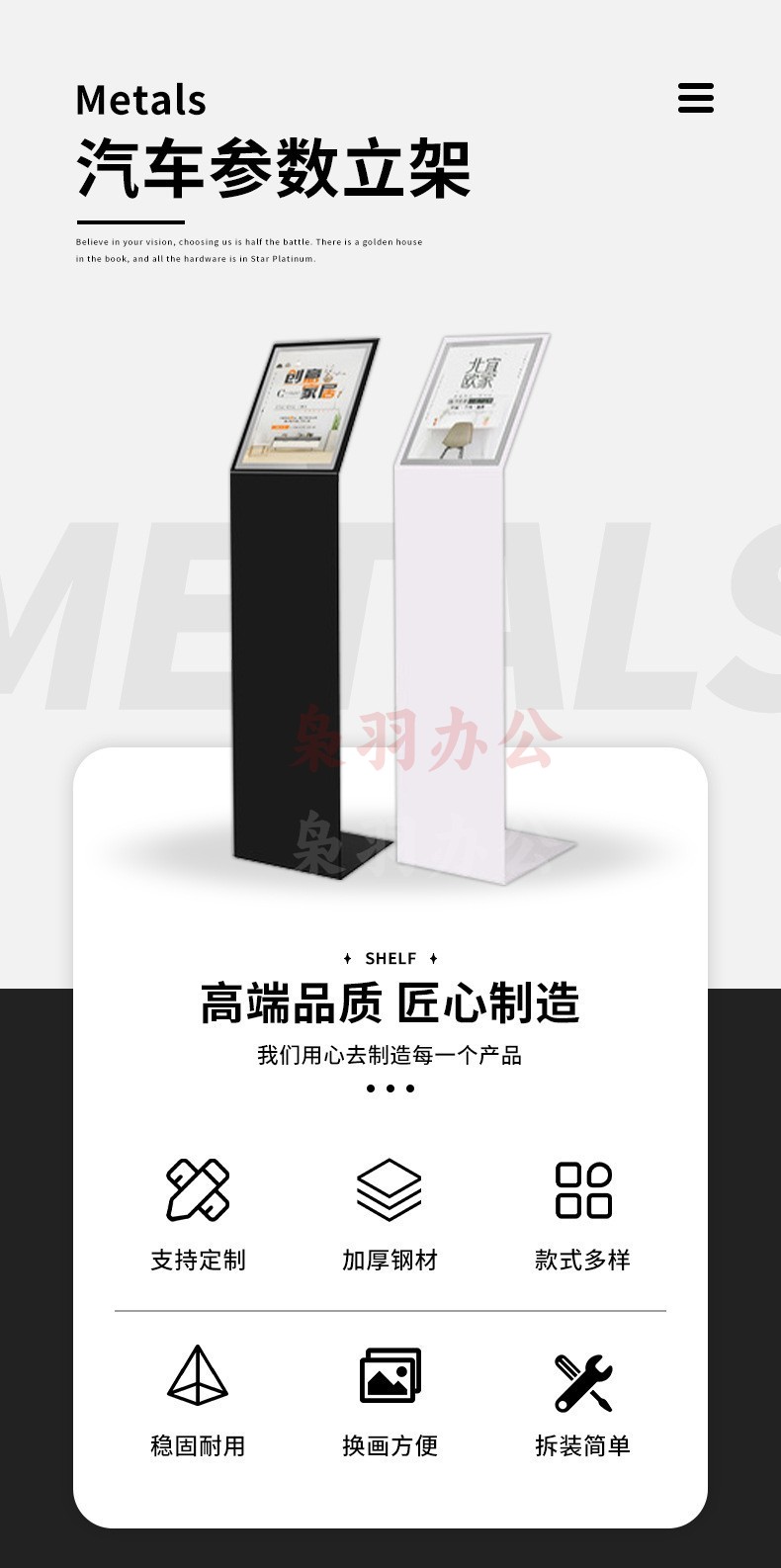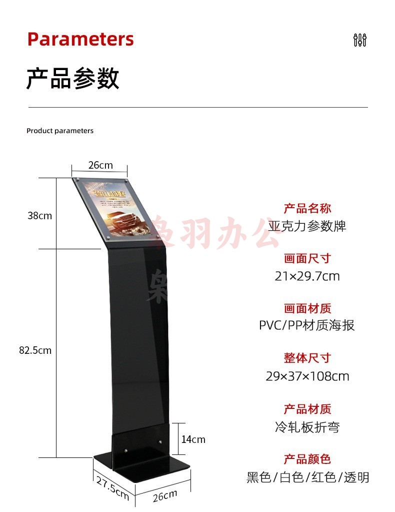 金属尺寸:A 4 展厅参数牌价格展示水牌A3A4亚克力广告牌4S店L型牌海报架