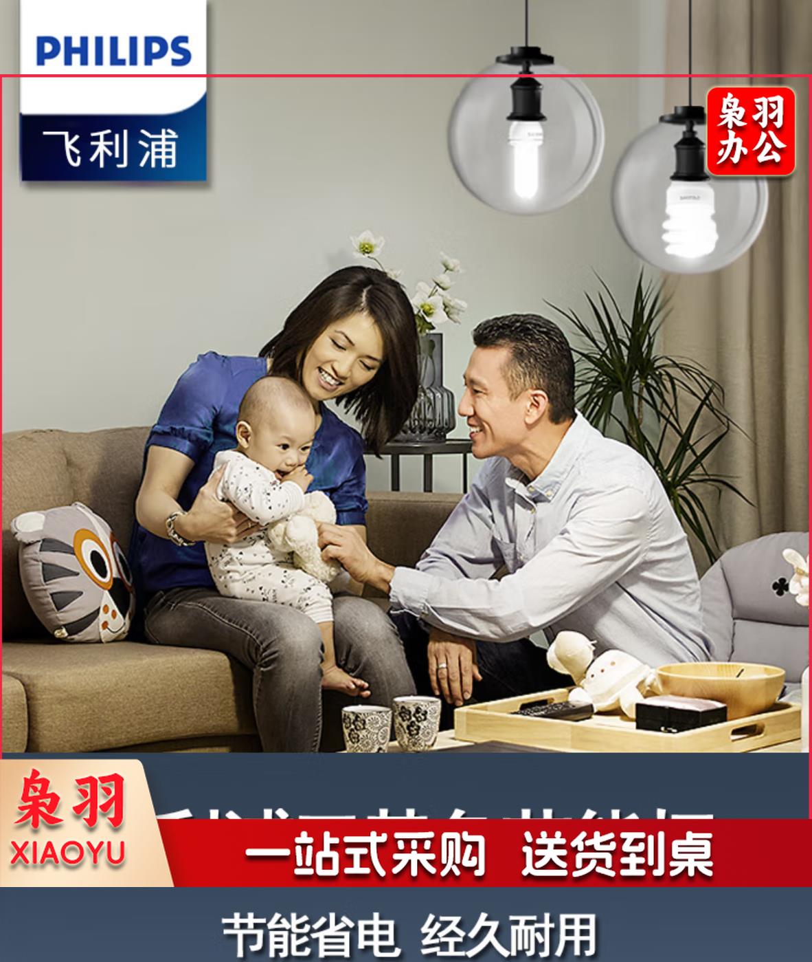 飞利浦(PHILIPS) 飞利浦2U三基色节能灯泡螺旋螺口led家用螺纹电灯台灯U型超亮日光灯管 【E27-2U】11W-白光6500K