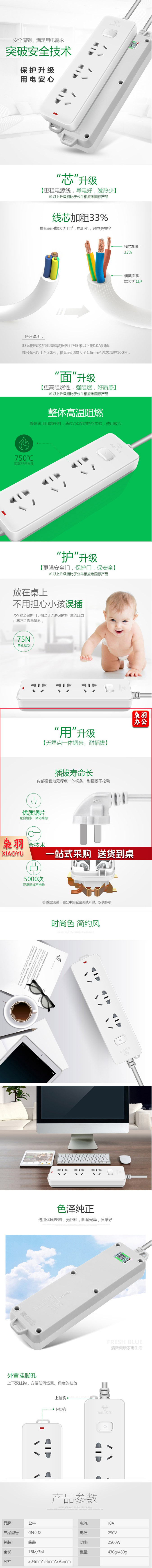 公牛GN-212 新国标插座/插线板/插排/排插/接线板/拖线板 3位总控全长1.8米