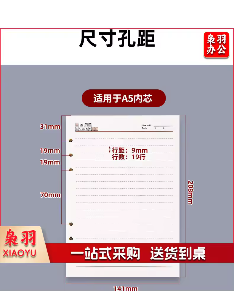 申士(SHEN SHI)918 18K 92张活页笔记本替芯 适合9孔B5活页本横线内芯