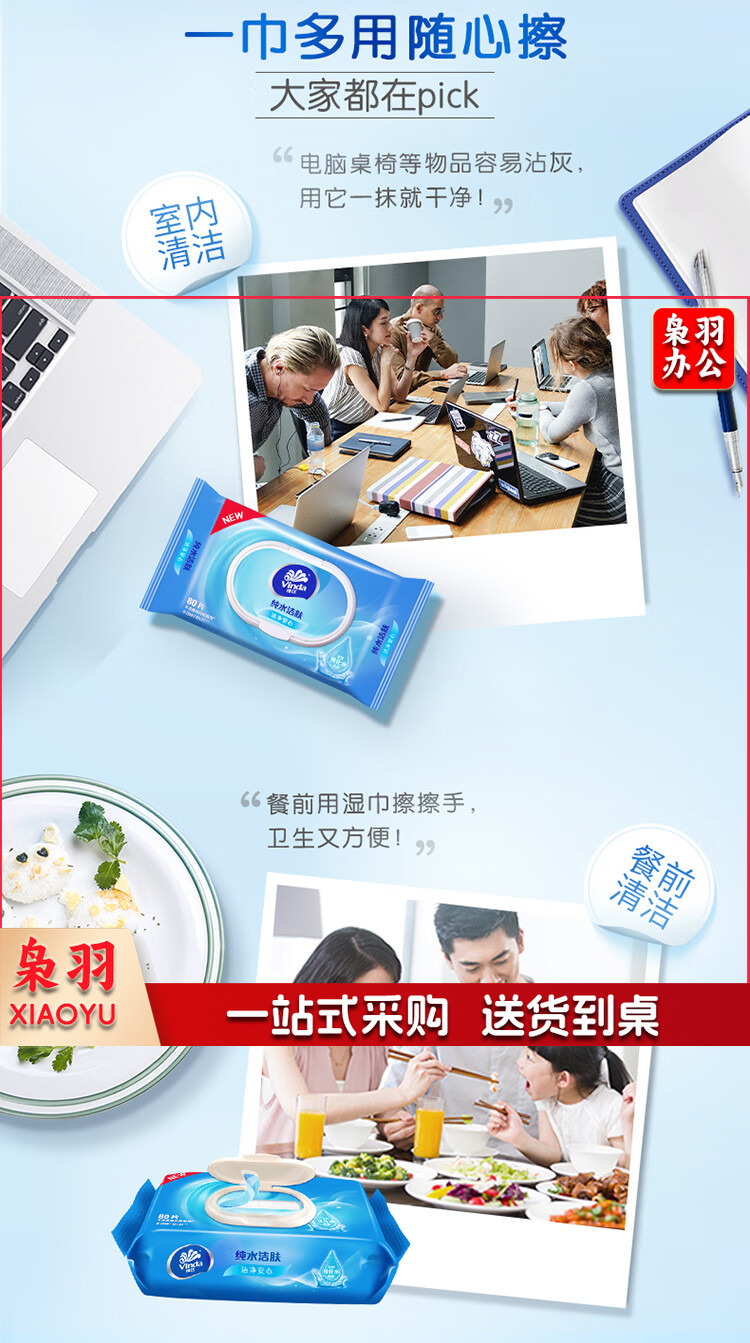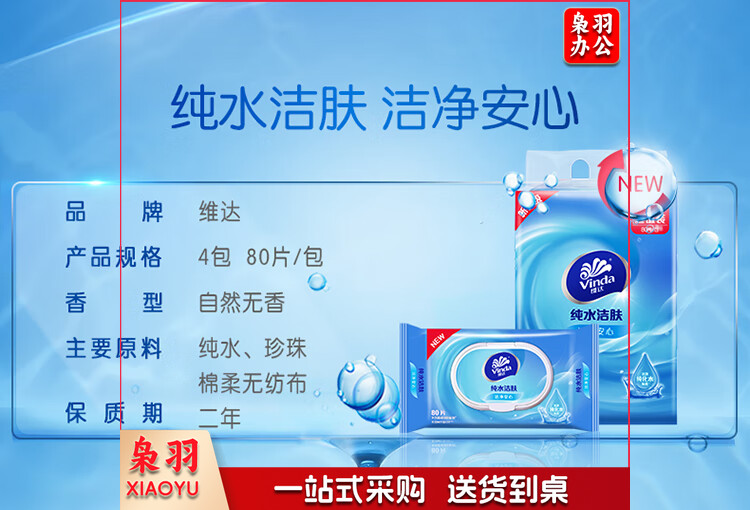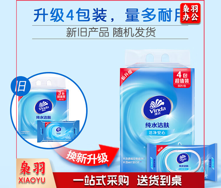 维达(Vinda)湿巾 湿纸巾RO纯水湿巾80片*4包纯水洁肤 母婴幼儿可用卫生湿巾纸