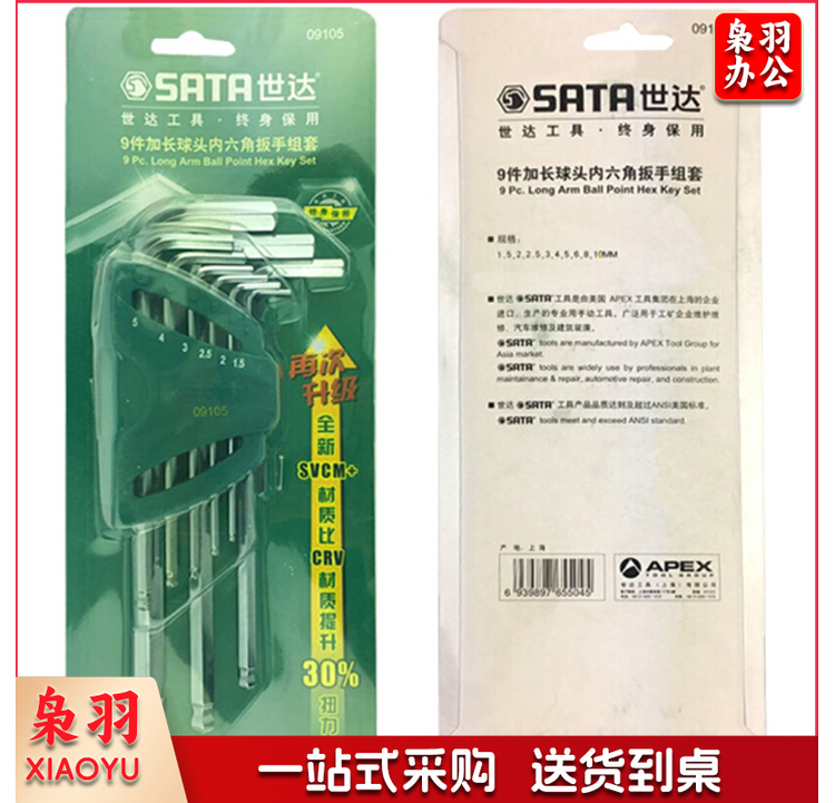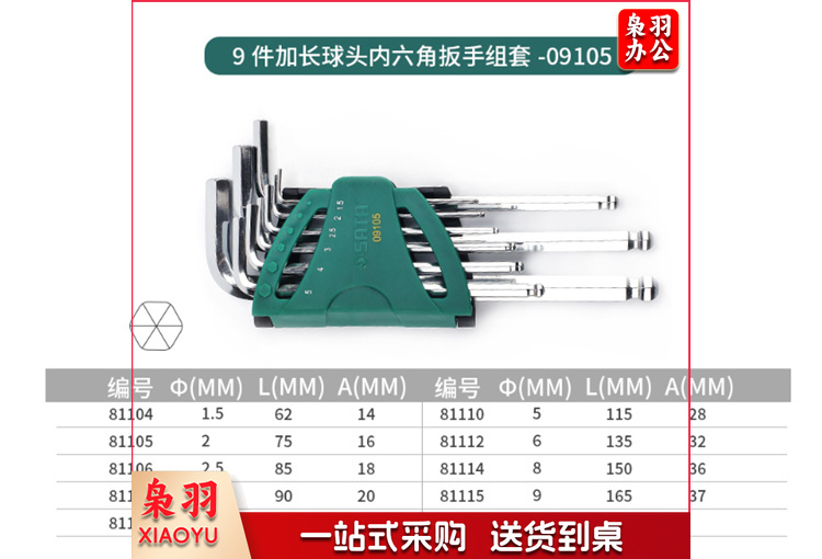 世达(SATA) 09105 9件加长球头内六角扳手组套