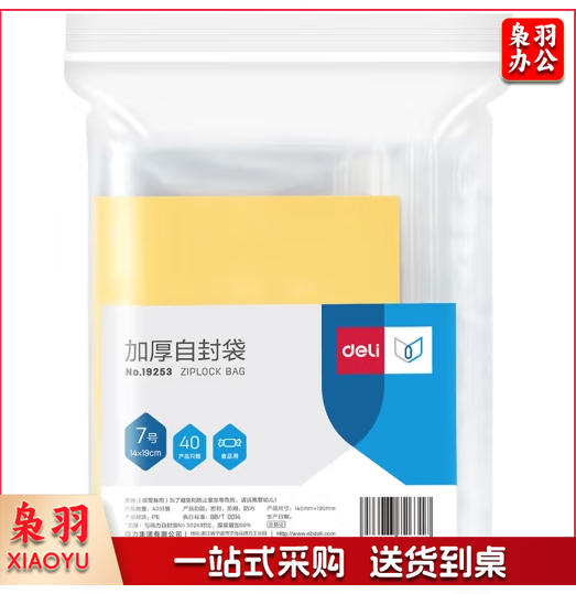 得力19253加厚自封袋(14*19cm)7号(透明)(40只/包) 单位:包
