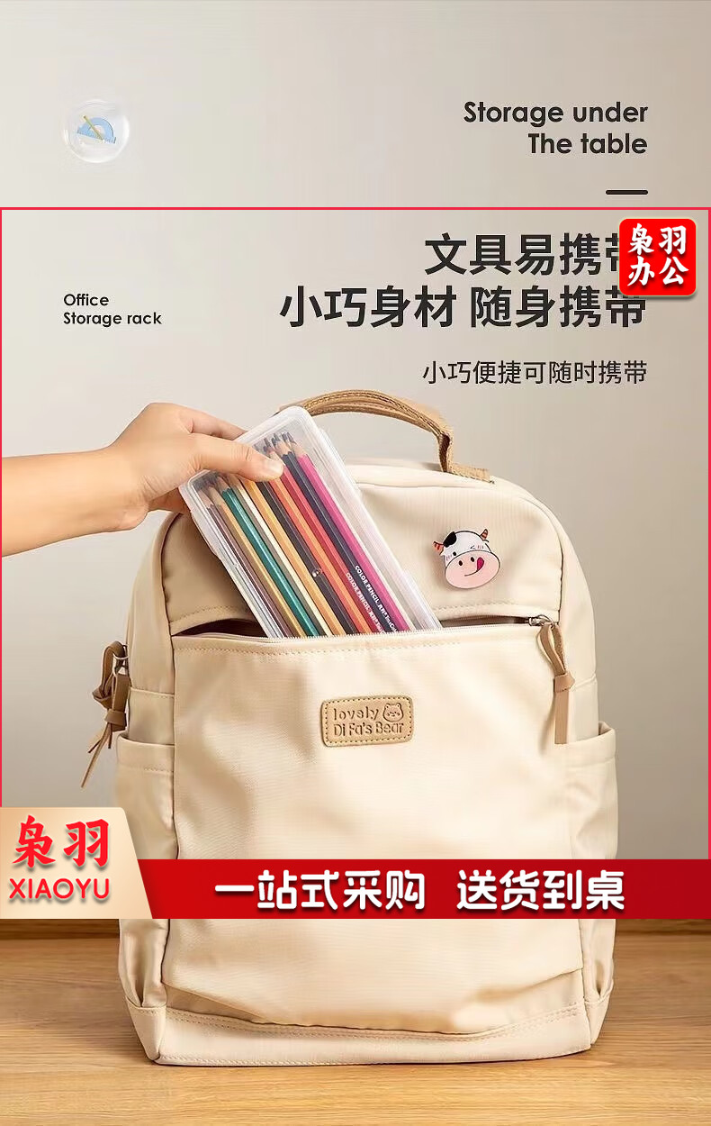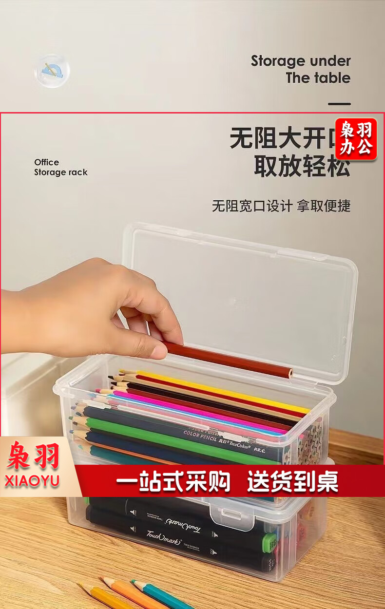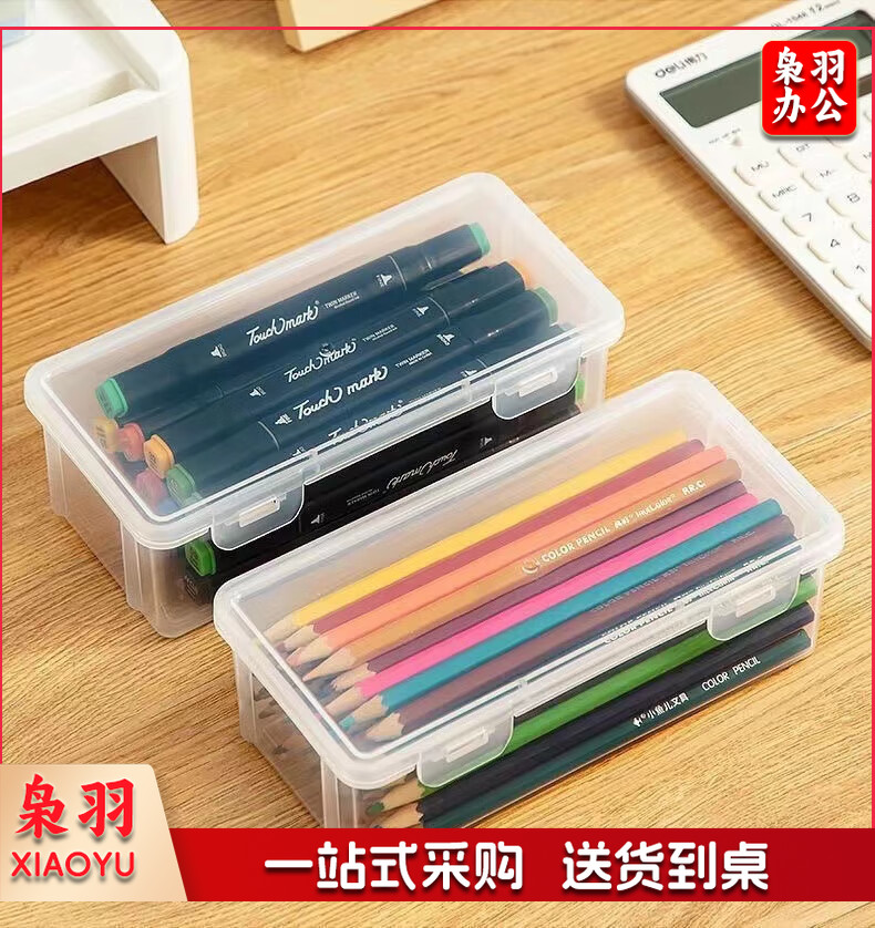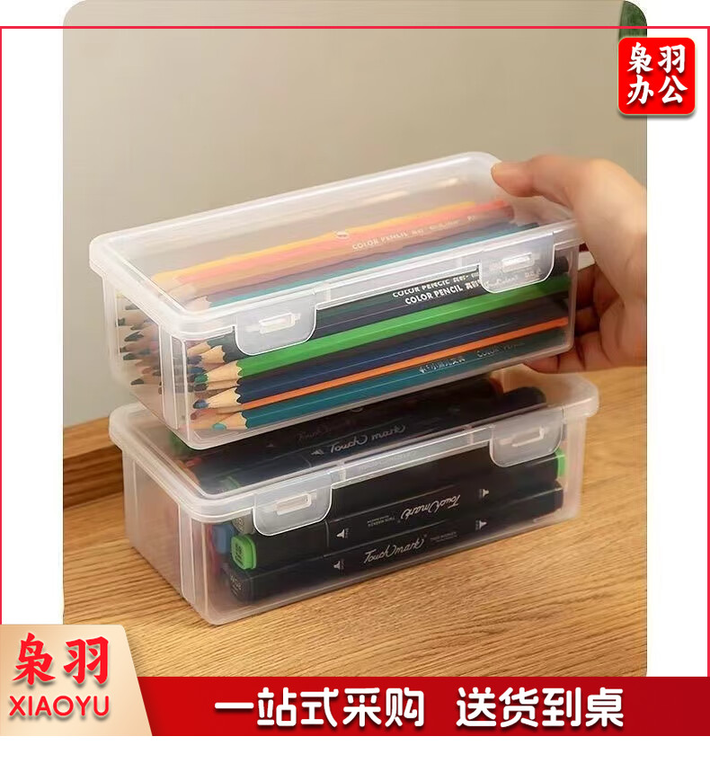 透明文具收纳盒多功能收纳盒大容量笔筒装按动中性蜡笔 2个【多功能收纳盒】