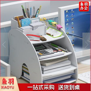文件收纳架 扇形文件架资料分类架,四层弧形带笔筒