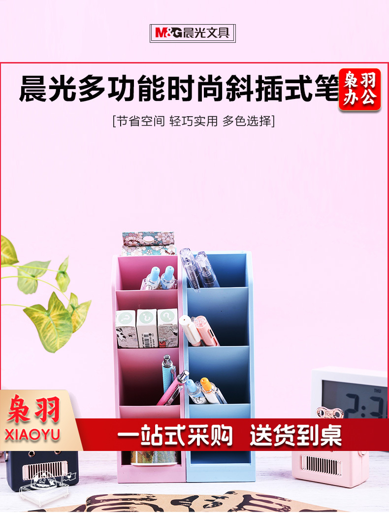 晨光(M&G) ABT98476 文具斜插式笔筒功能可移动收纳盒书桌办公室笔筒北欧粉