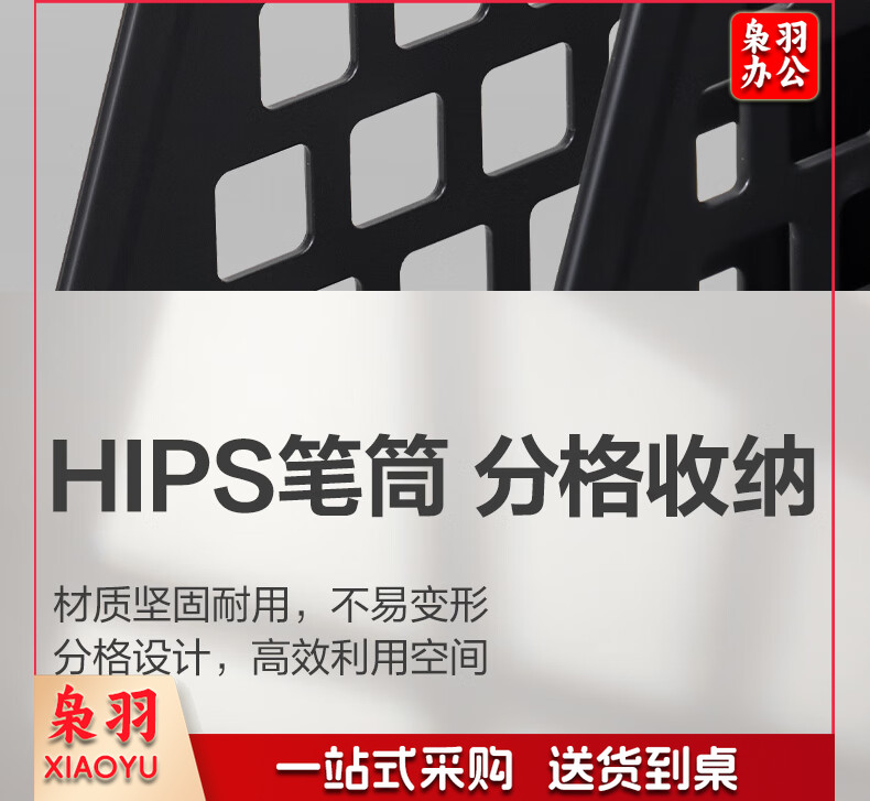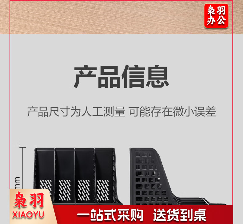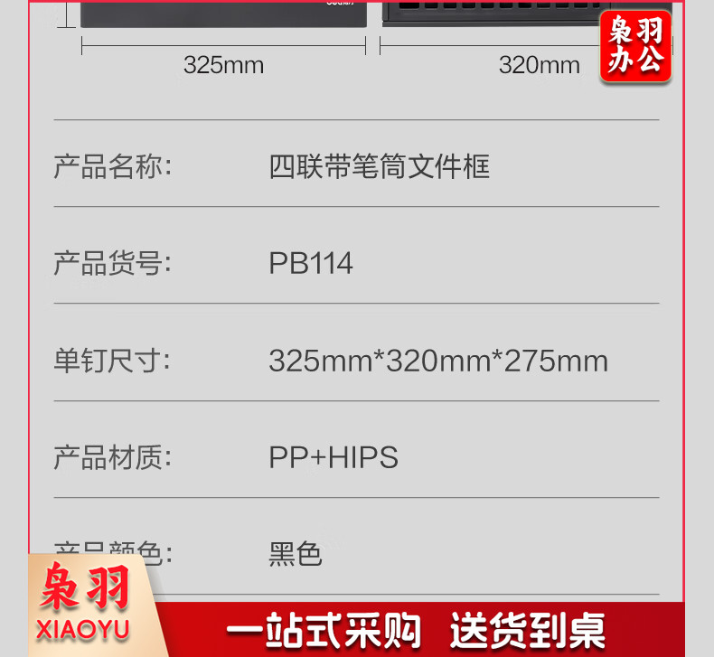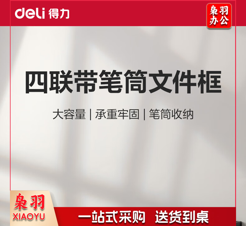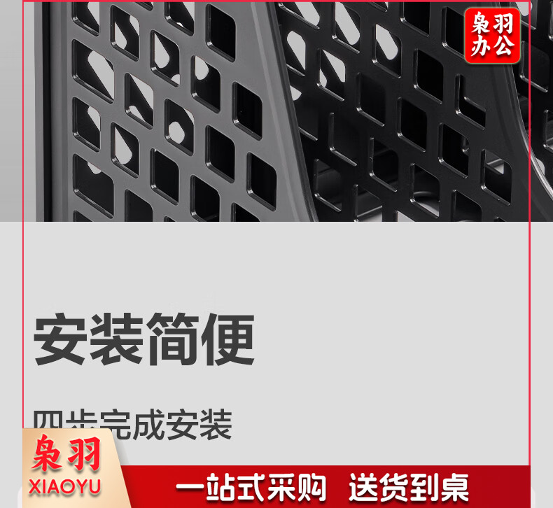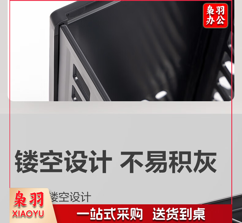 得力(deli)4联带笔筒多功能桌面档案收纳盒文件框栏篮盘书立架 办公用品多层文件置物架资料架镂空黑色