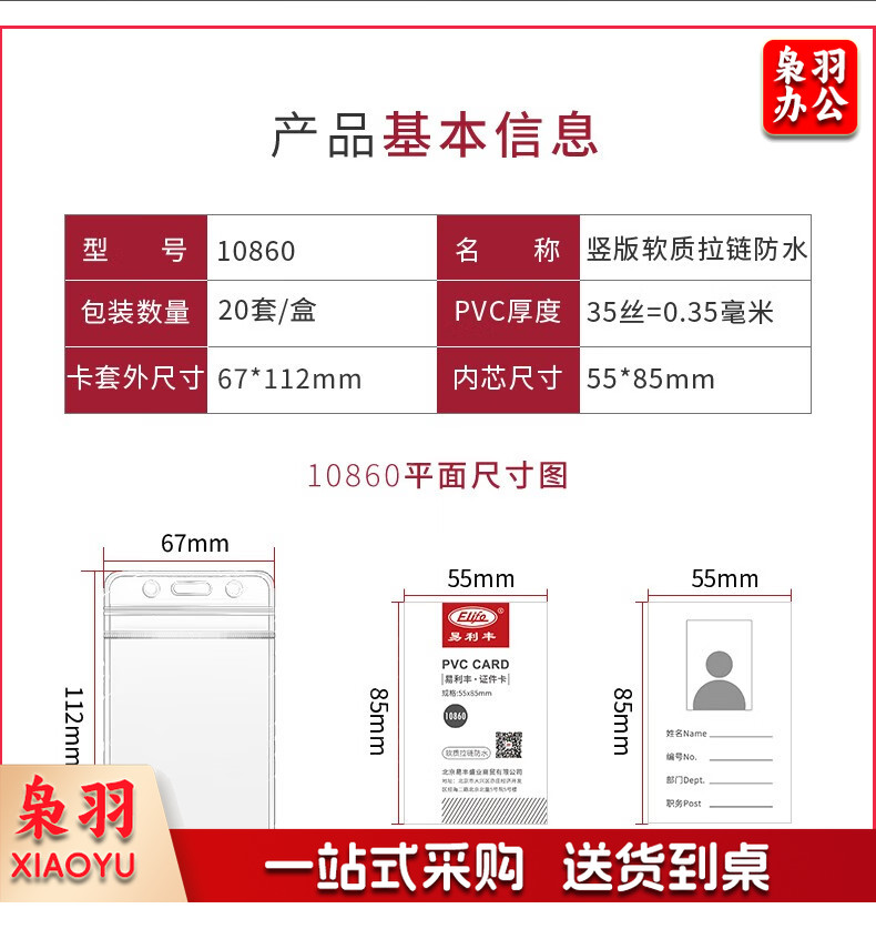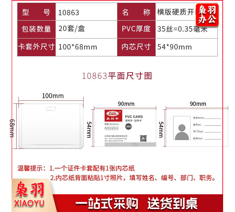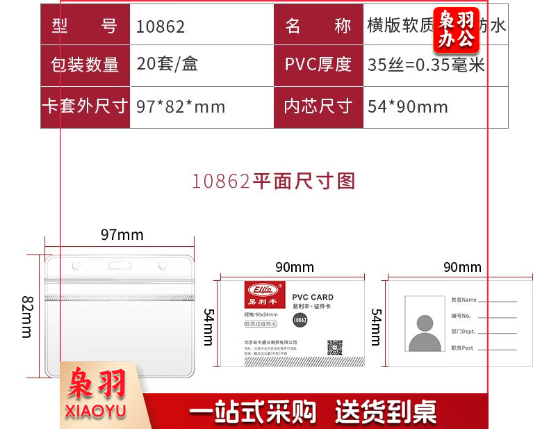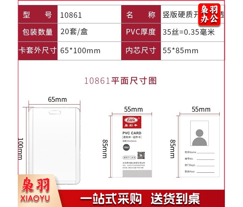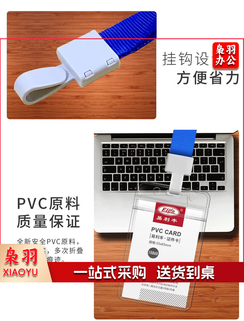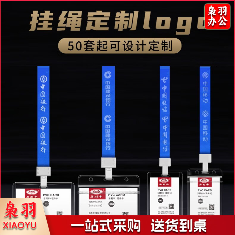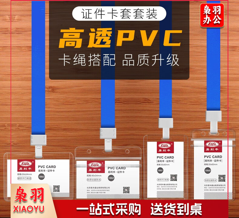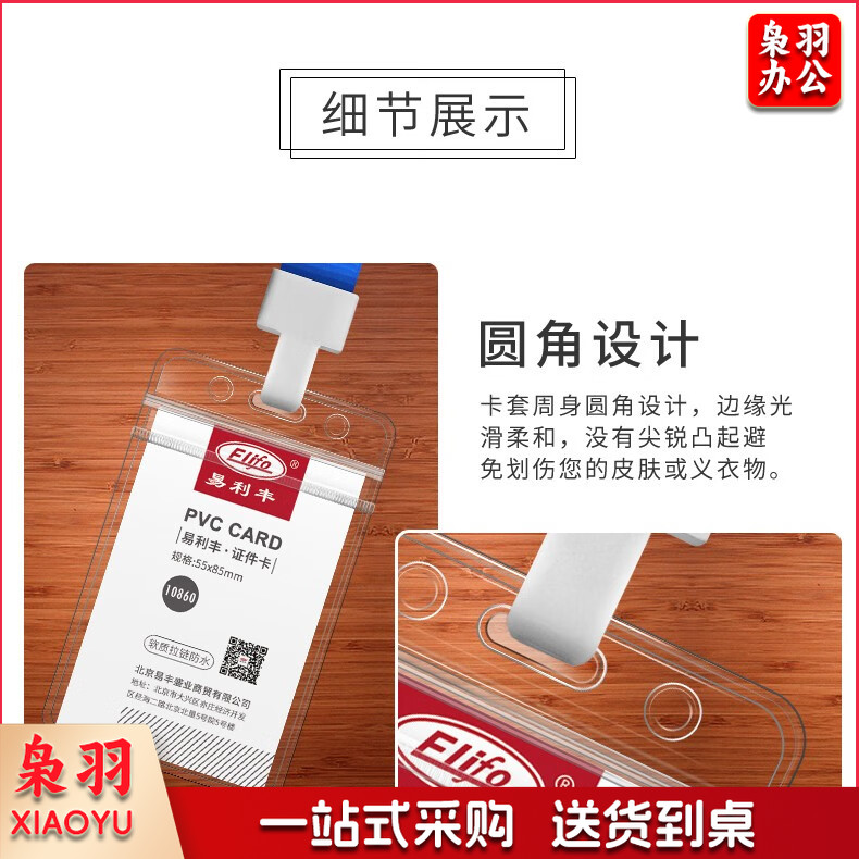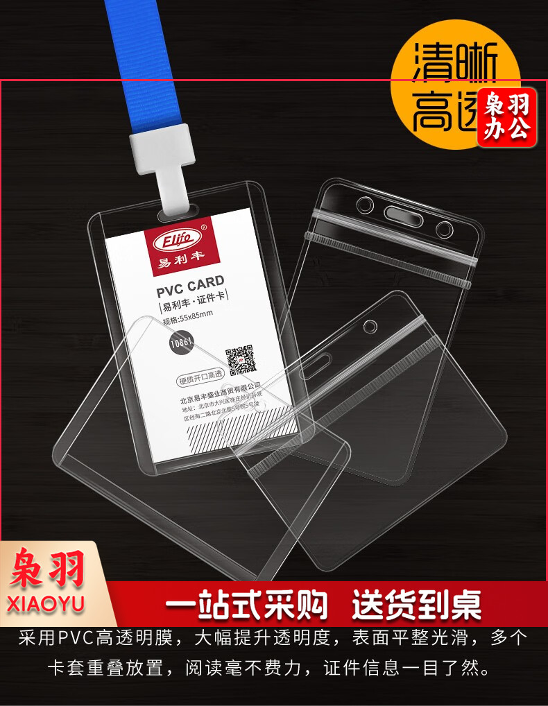 易利丰(elifo) 工作牌卡套工牌证件卡套学生透明PVC皮套胸牌 竖版软质(78*125mm)10卡+10深蓝绳
