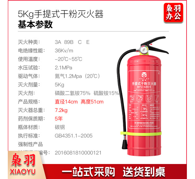 援邦 干粉灭火器5公斤 车载灭火器商用公司办公室商场店铺消防灭火器 加强款
