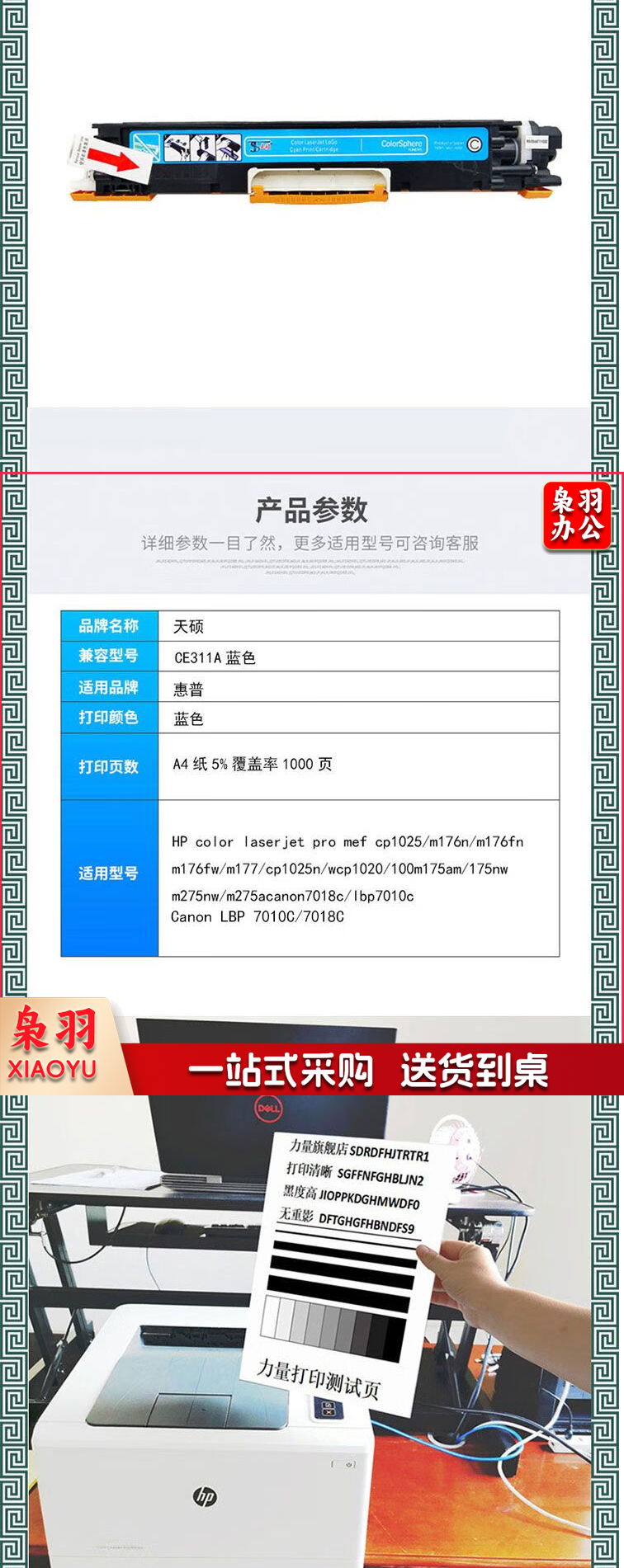 天硕品牌CE311A/CF351A/CRG329粉盒蓝色适用惠普CP1025/176N/177/175佳能7010/7018