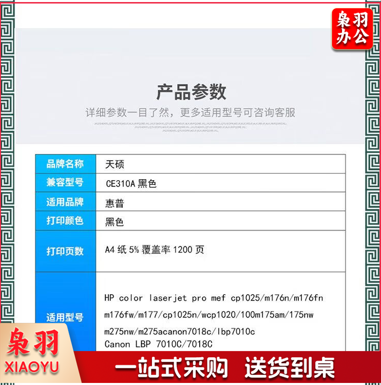 天硕品牌CE310A/CF350A/CRG329粉盒黑色适用惠普CP1025/176N/177/175佳能7010/7018