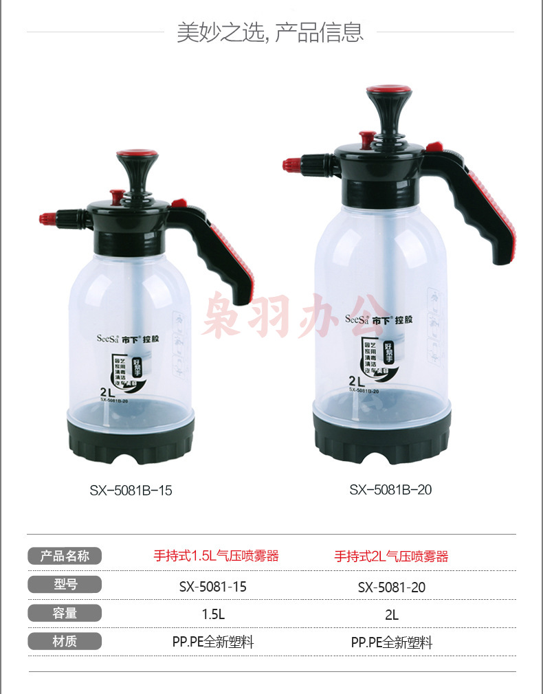 2L手动气压喷水壶园艺保湿塑料喷雾器透明手持喷壶泡沫喷壶