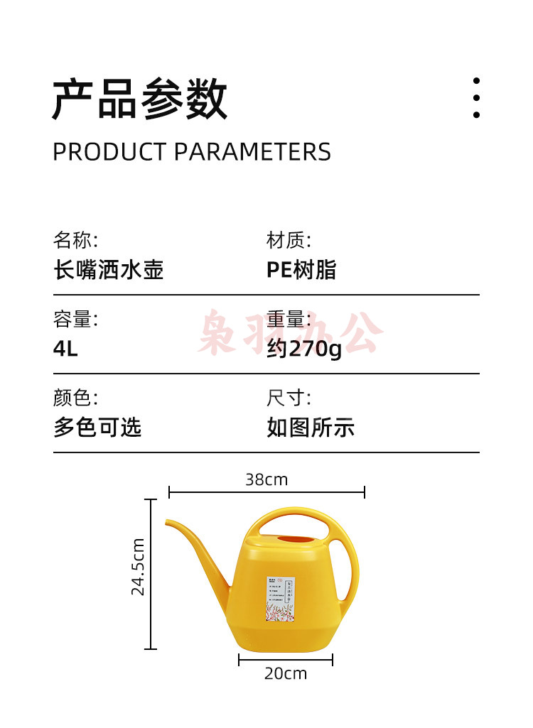 4L大容量长嘴浇水壶家用塑料园艺工具洒水壶休闲绿植盆栽浇花壶