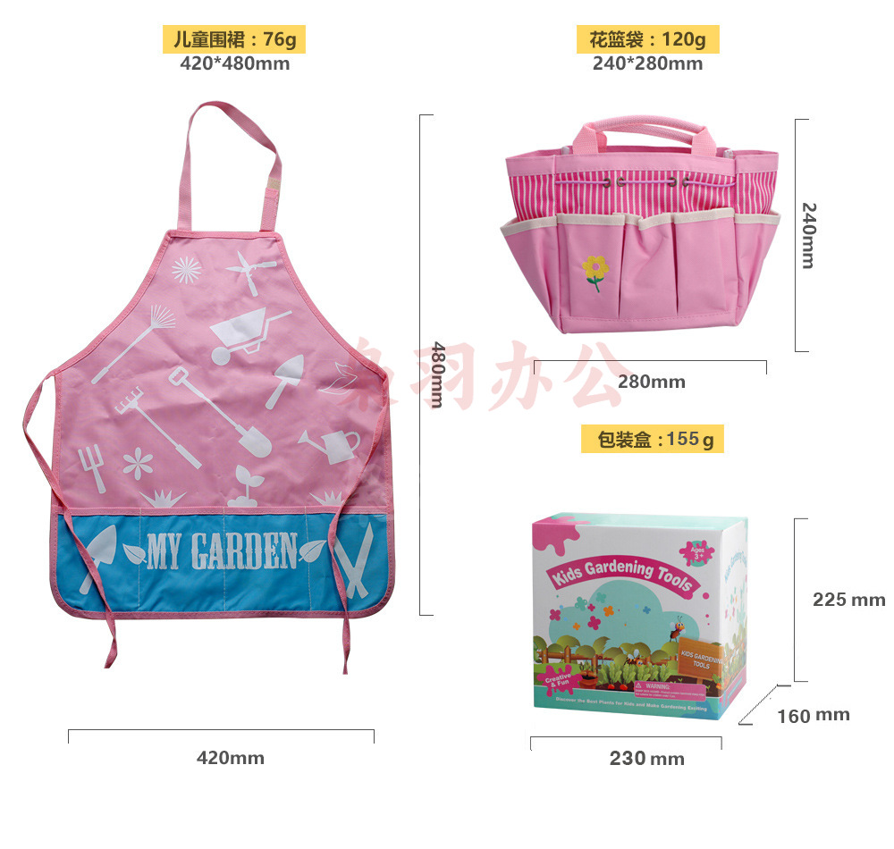 儿童园艺工具套装手提袋浇花壶种植花草赶海挖沙户外园林工具套装