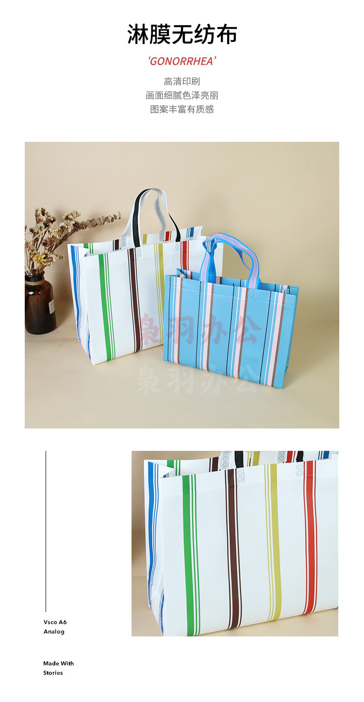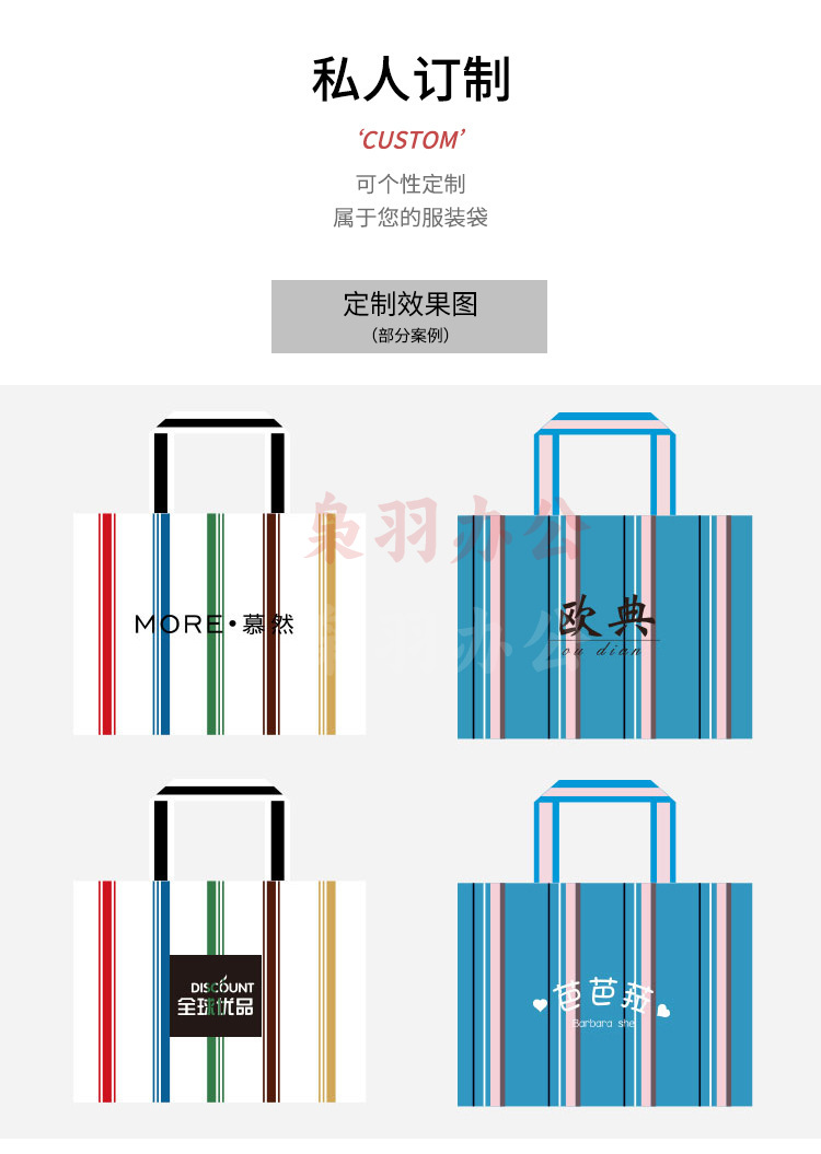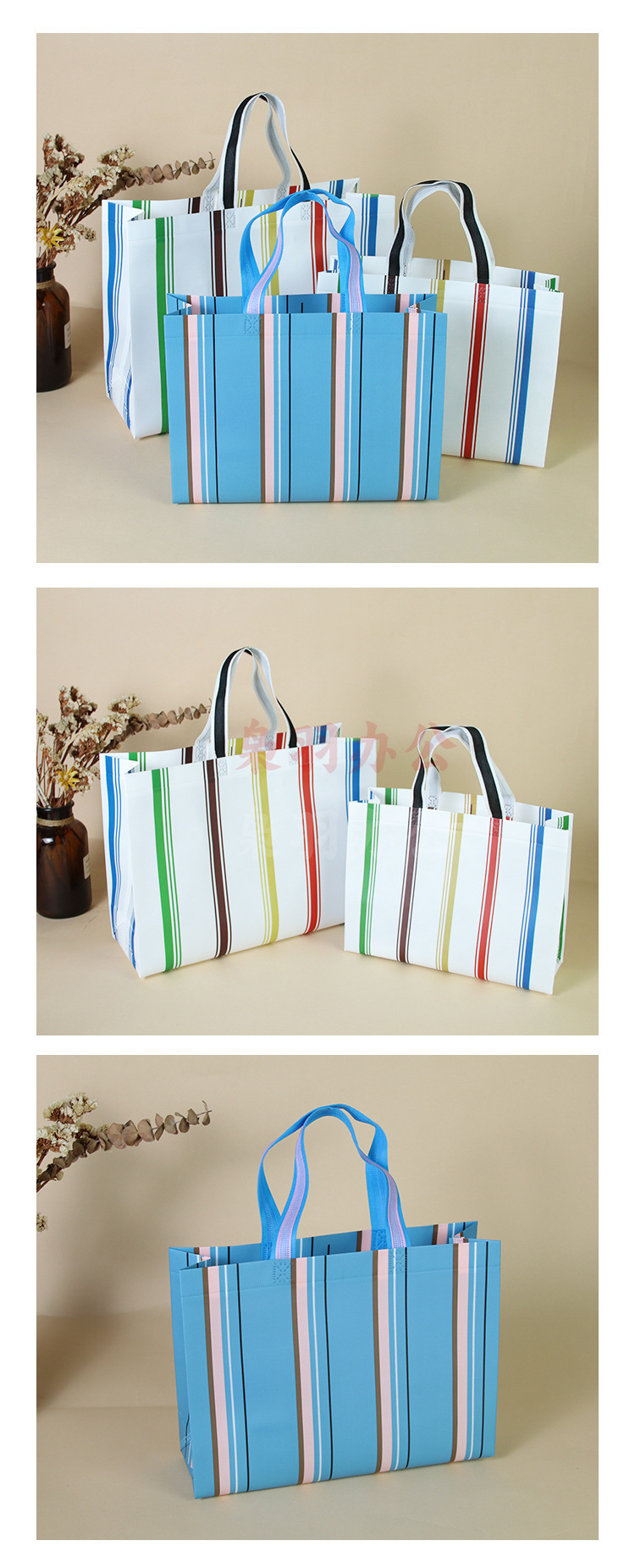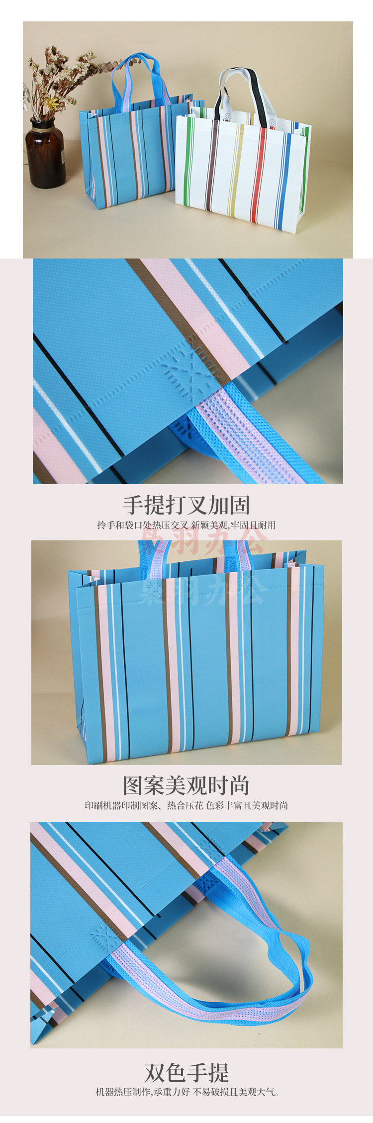 (条纹蓝底42*32*14cm)无纺布覆膜立体袋服装内衣购物袋防水防尘加厚手提袋可印logo