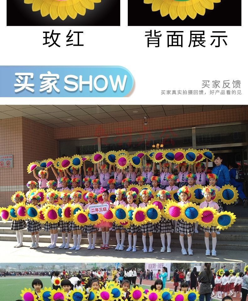 45cm太阳花【红色】 五色太阳花向日葵 学校运动会开幕式 手翻花表演手拿助威道具
