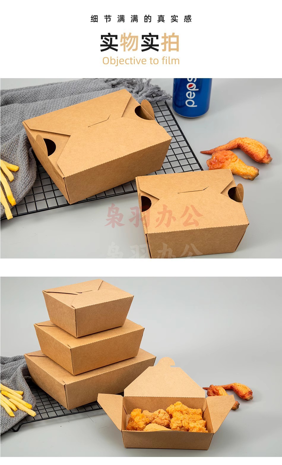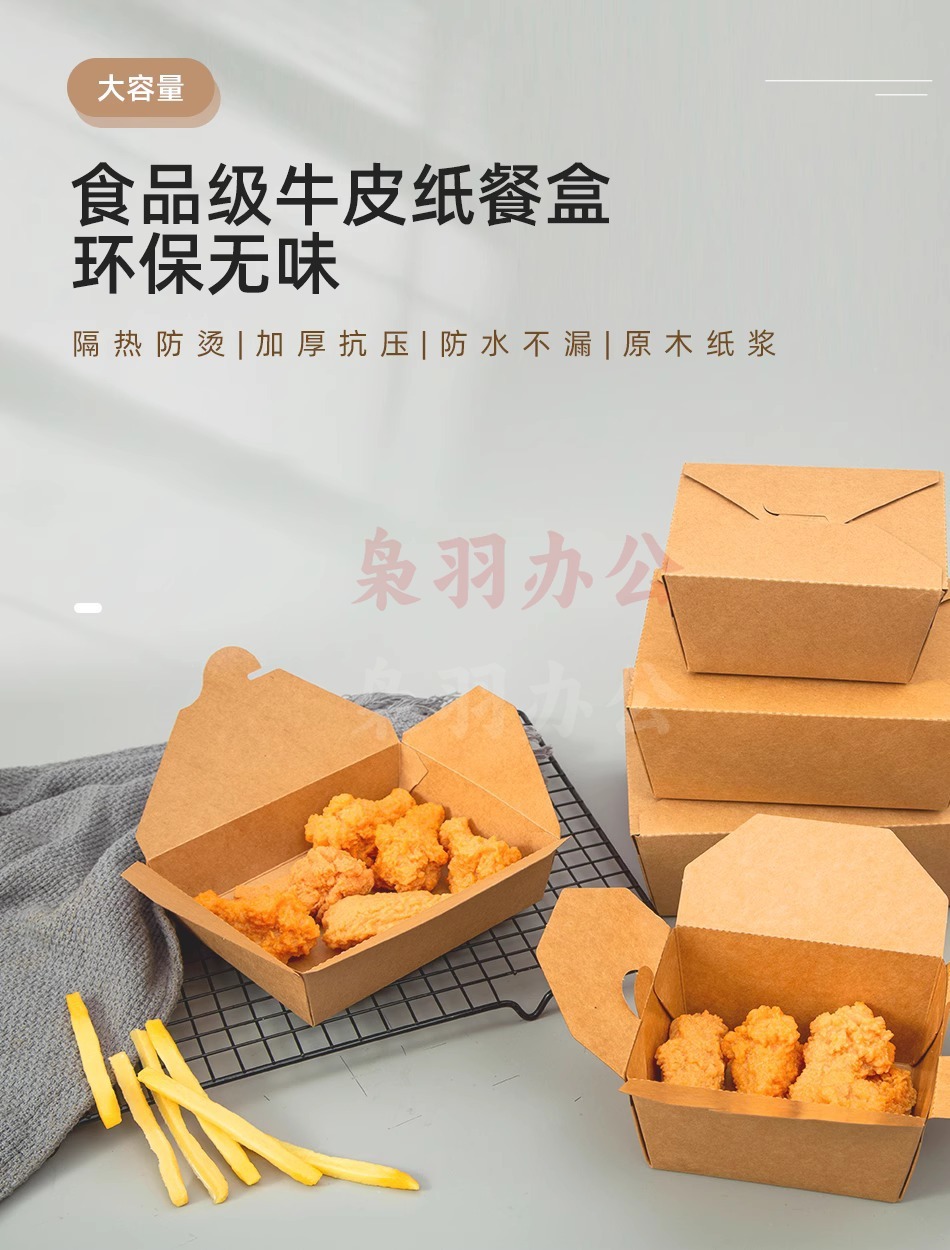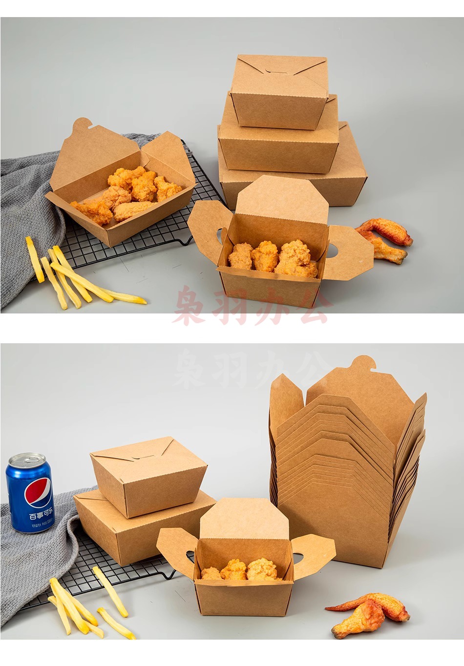 牛皮纸餐盒打包盒一次性商用韩式炸鸡盒油炸小吃外卖大中小包装盒牛皮纸5号餐盒【带气孔】