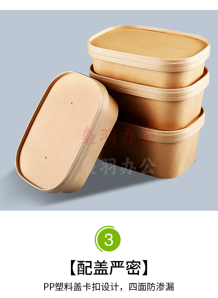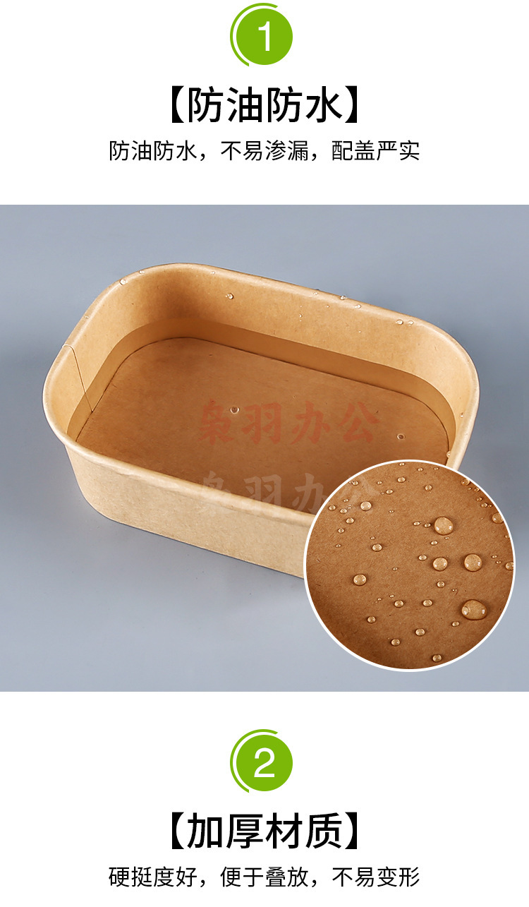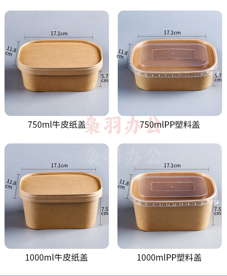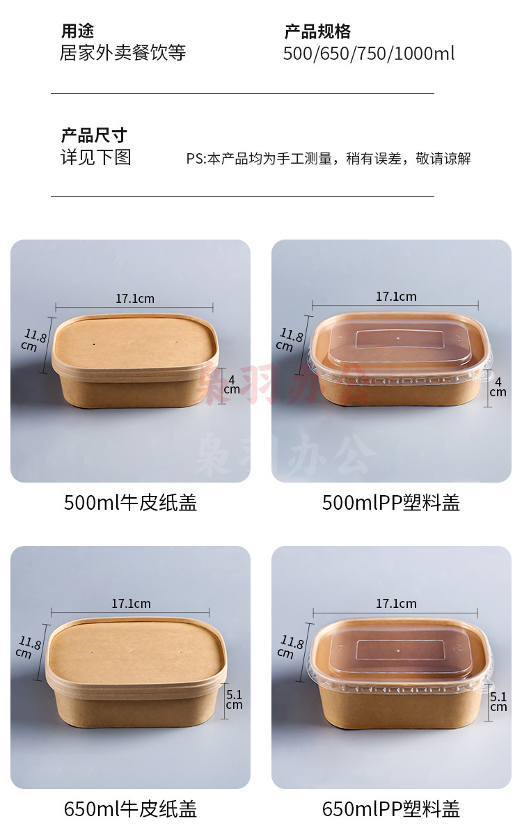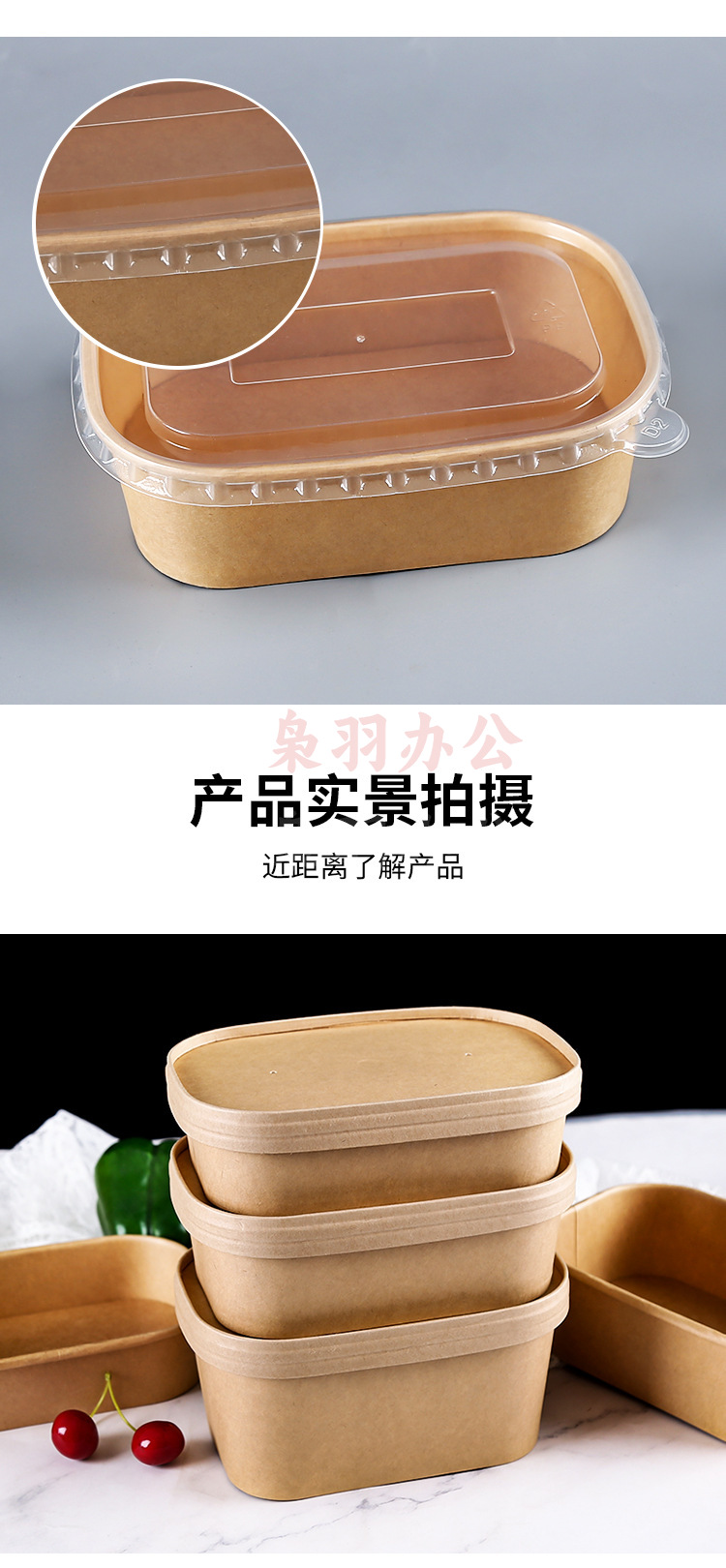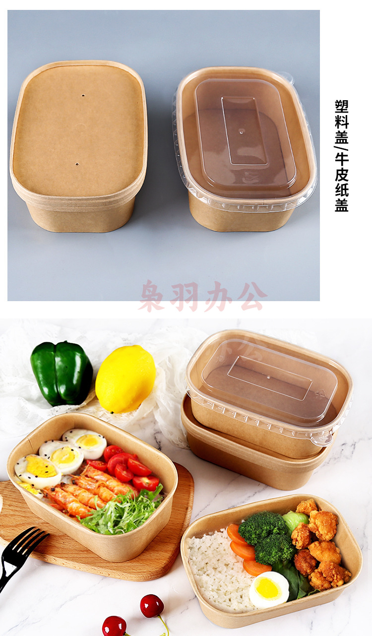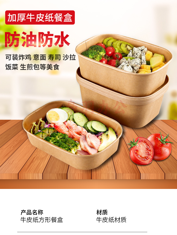 一次性纸碗牛皮纸打包盒野餐盒外卖可降解餐盒沙拉便当盒长方形碗750ml方形牛皮纸(不含盖,盖另拍)