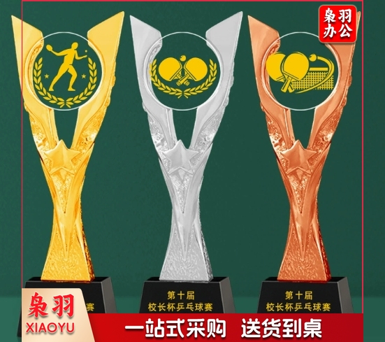 (均号25X8CM)乒乓球比赛水晶奖杯制作体育团体荣誉表彰免费刻字运动会新款奖牌
