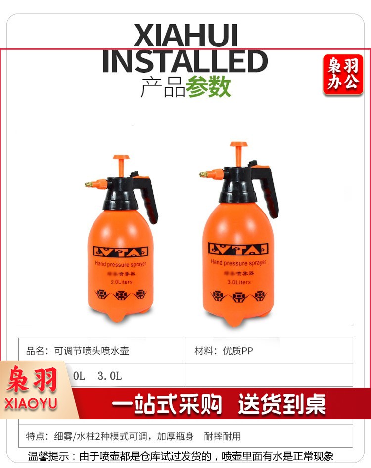 喷雾器 气压式浇花喷壶洒水壶 园艺用品喷水壶 橙色 2L