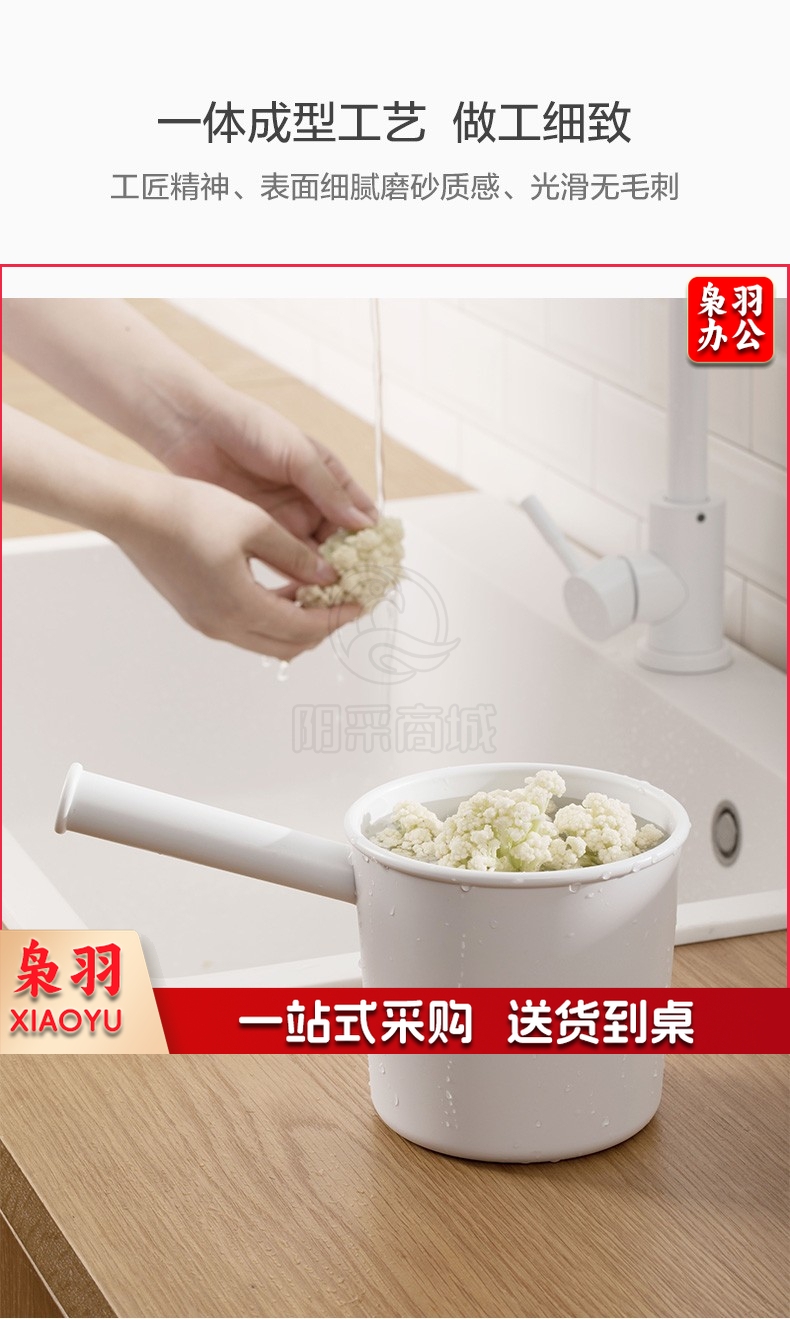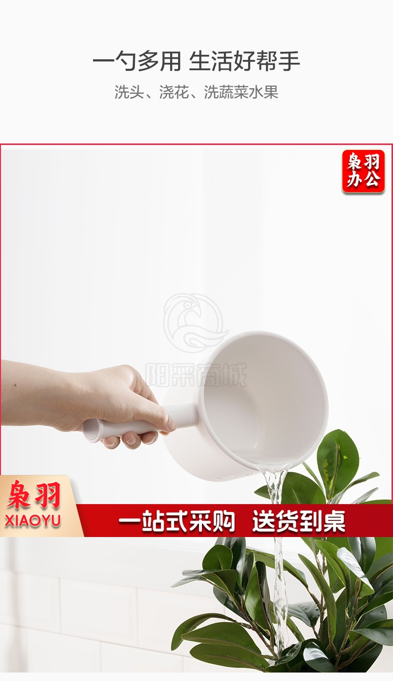 茶花朴简日式单手桶 家用厨房水瓢 浇花长柄水勺沐浴塑料手桶 贝利单手勺