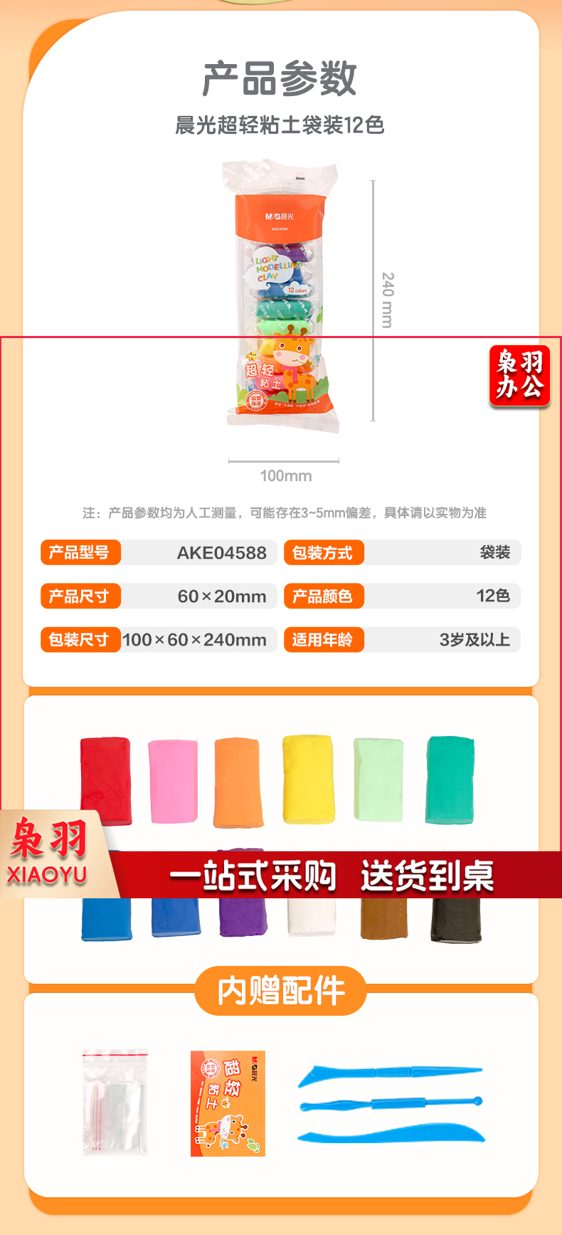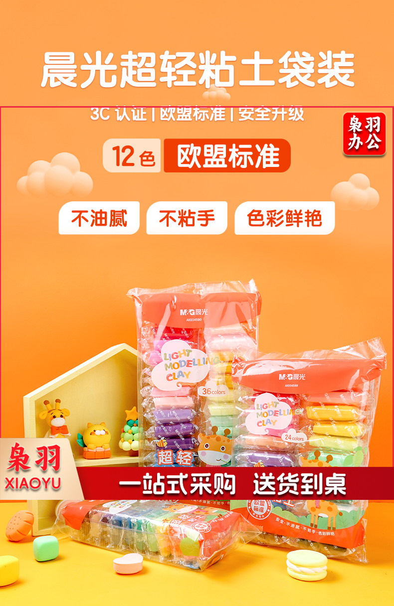晨光(M&G)AKE04588 12色超轻粘土 彩泥粘土橡皮泥4D 袋装小鹿系列