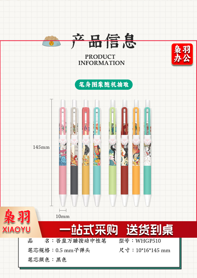 齐心(Comix)吾皇万睡按动中性笔 盲盒笔签字笔0.5mm子弹头 单只装WHGP510