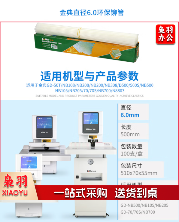 金典(GOLDEN)装订机装订管财务装订机铆管6.0mm 100支/盒