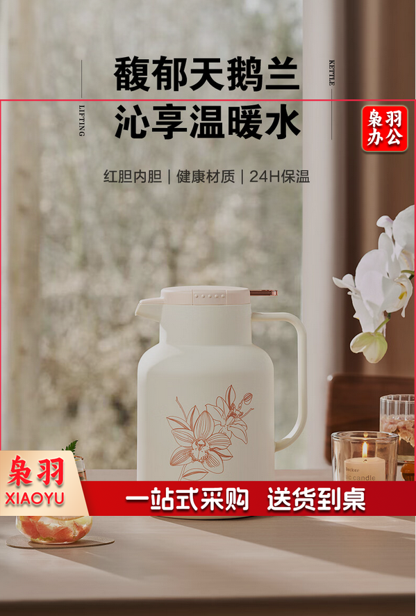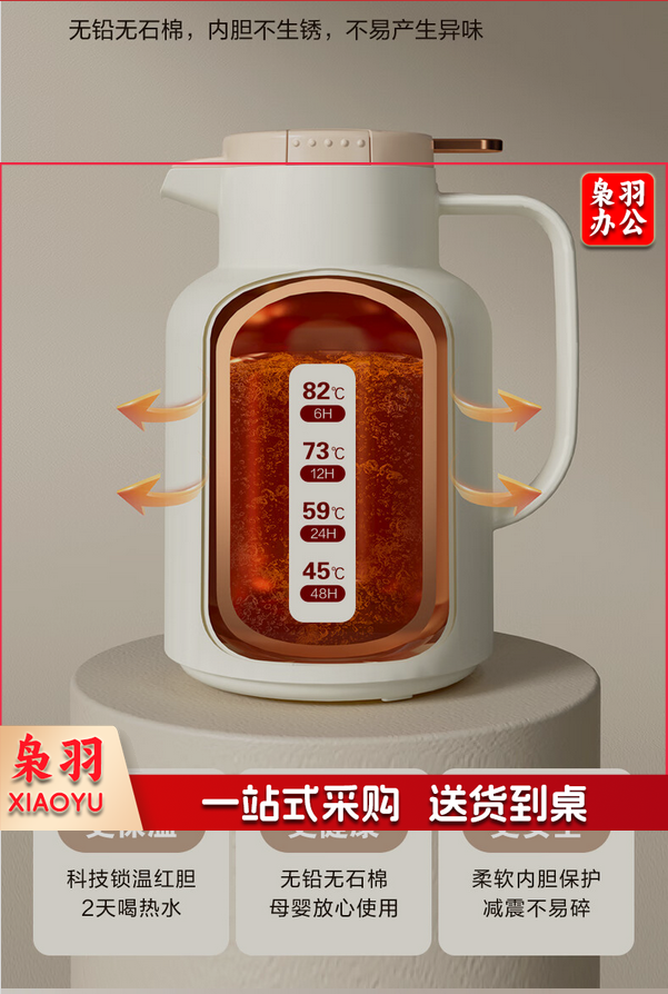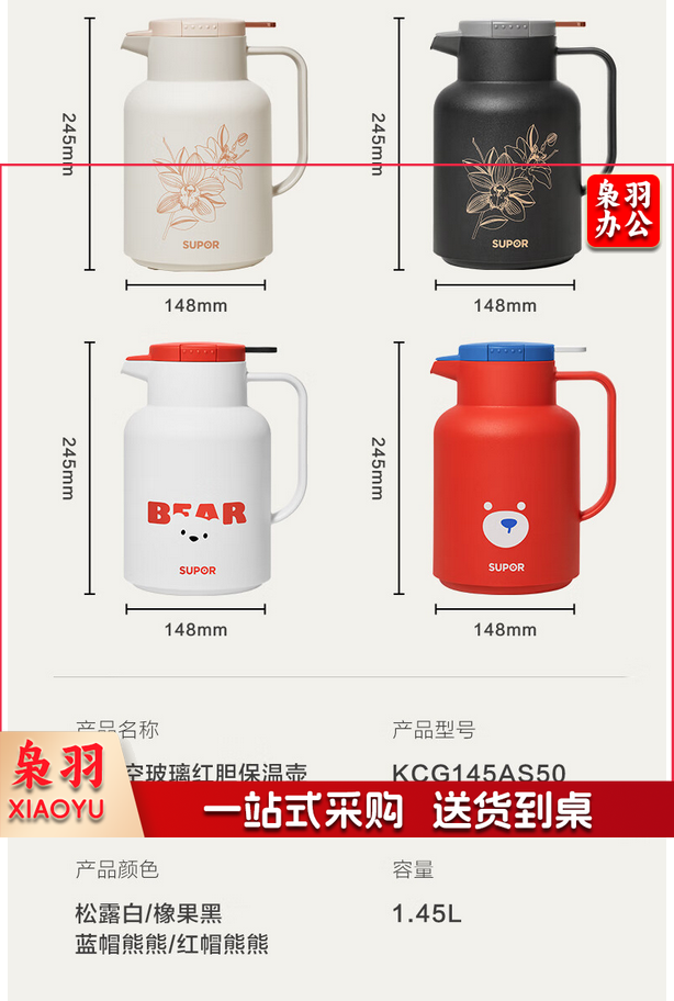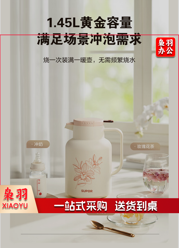 苏泊尔(SUPOR)保温壶家用玻璃内胆热水壶按压式保温瓶大容量商务办公泡茶开水瓶 1.45L-松露白