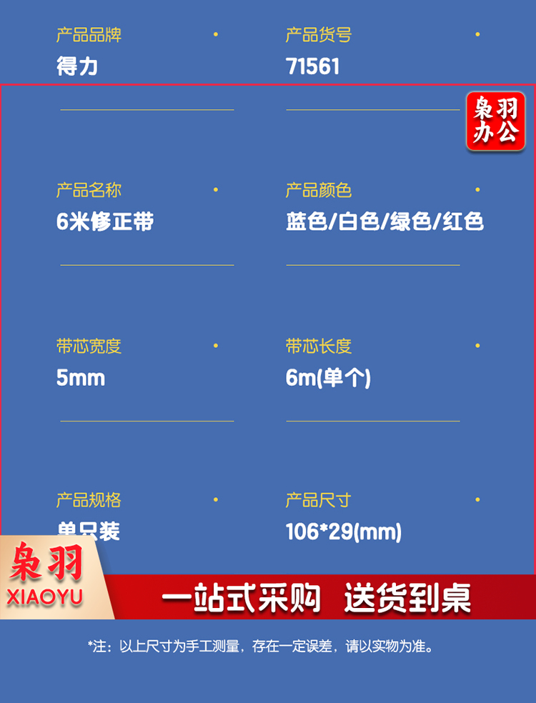 得力71561复古风格6m按动修正带(红)(个)