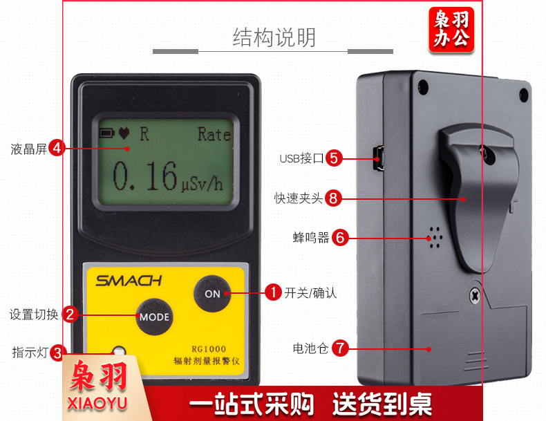 SMACH核辐射检测仪RG1000电离射线放射性个人剂量报警仪盖革计数器 RG600