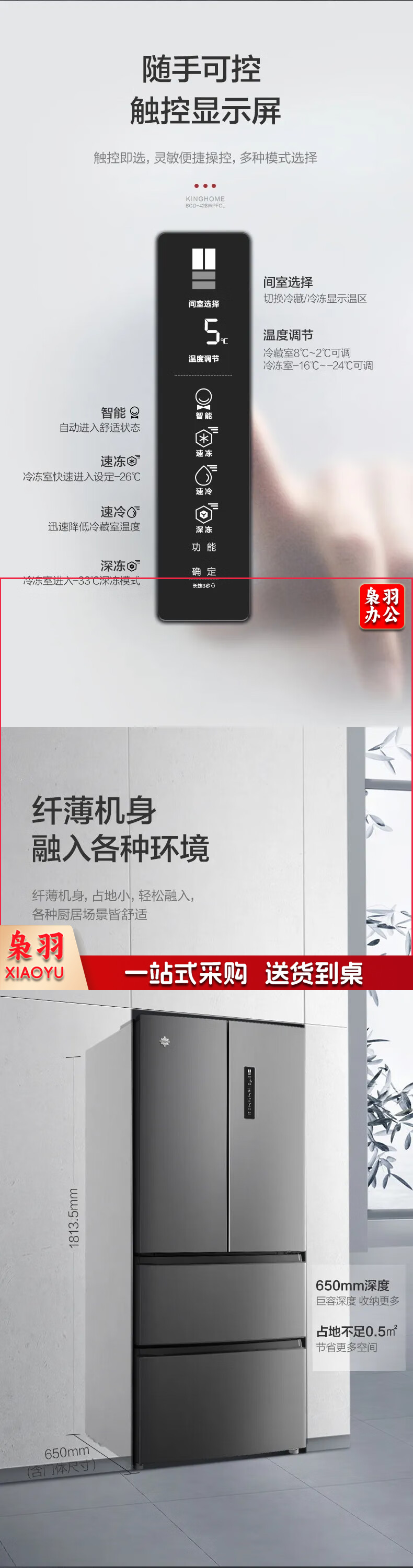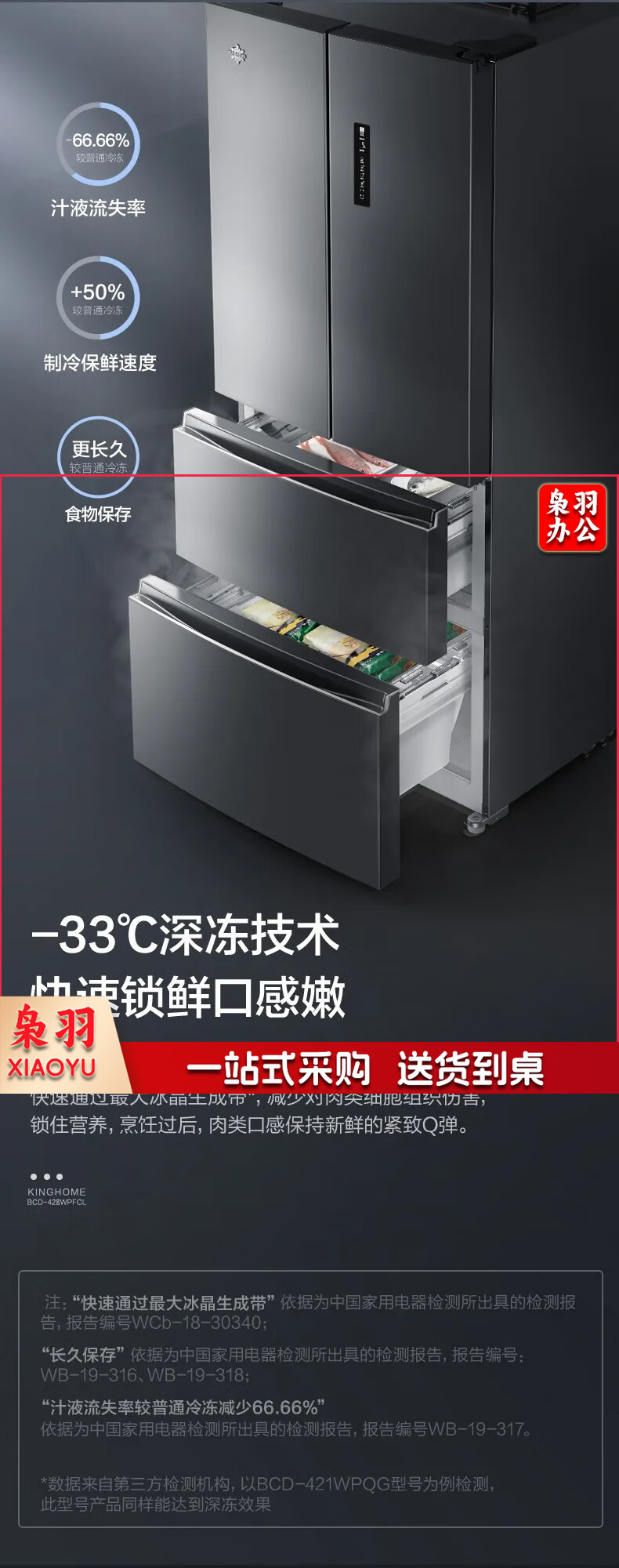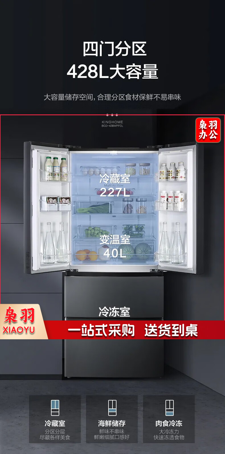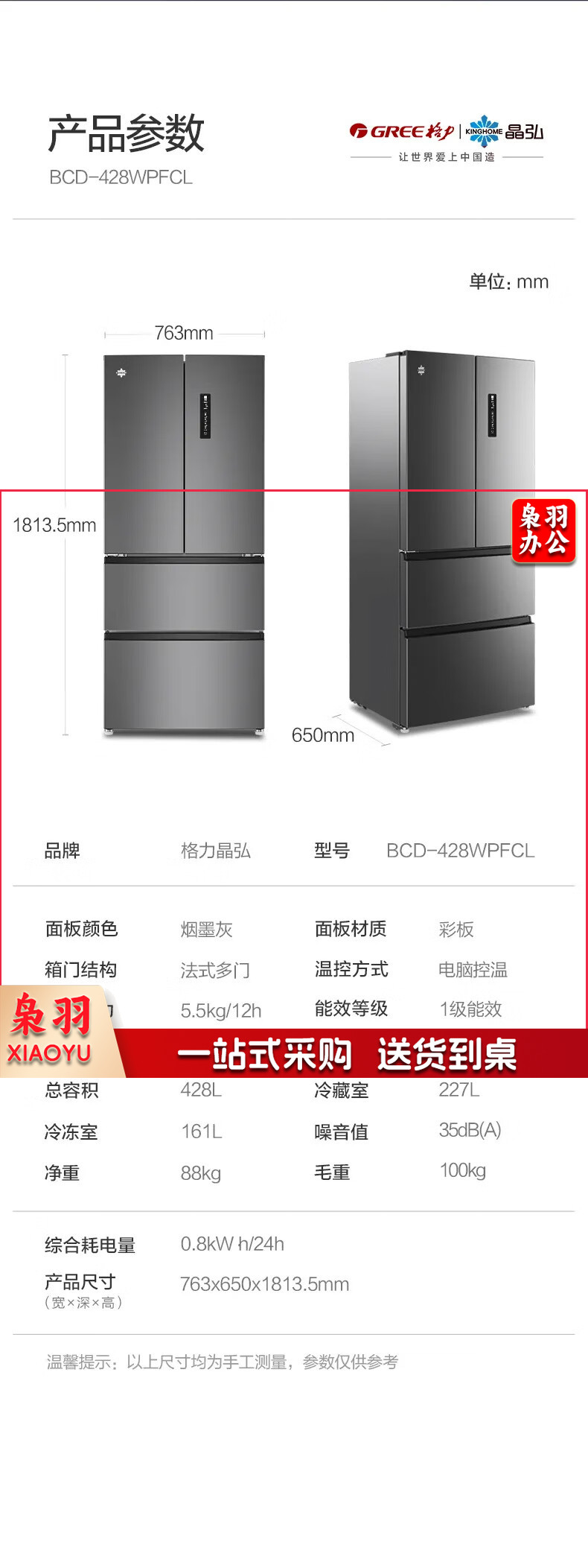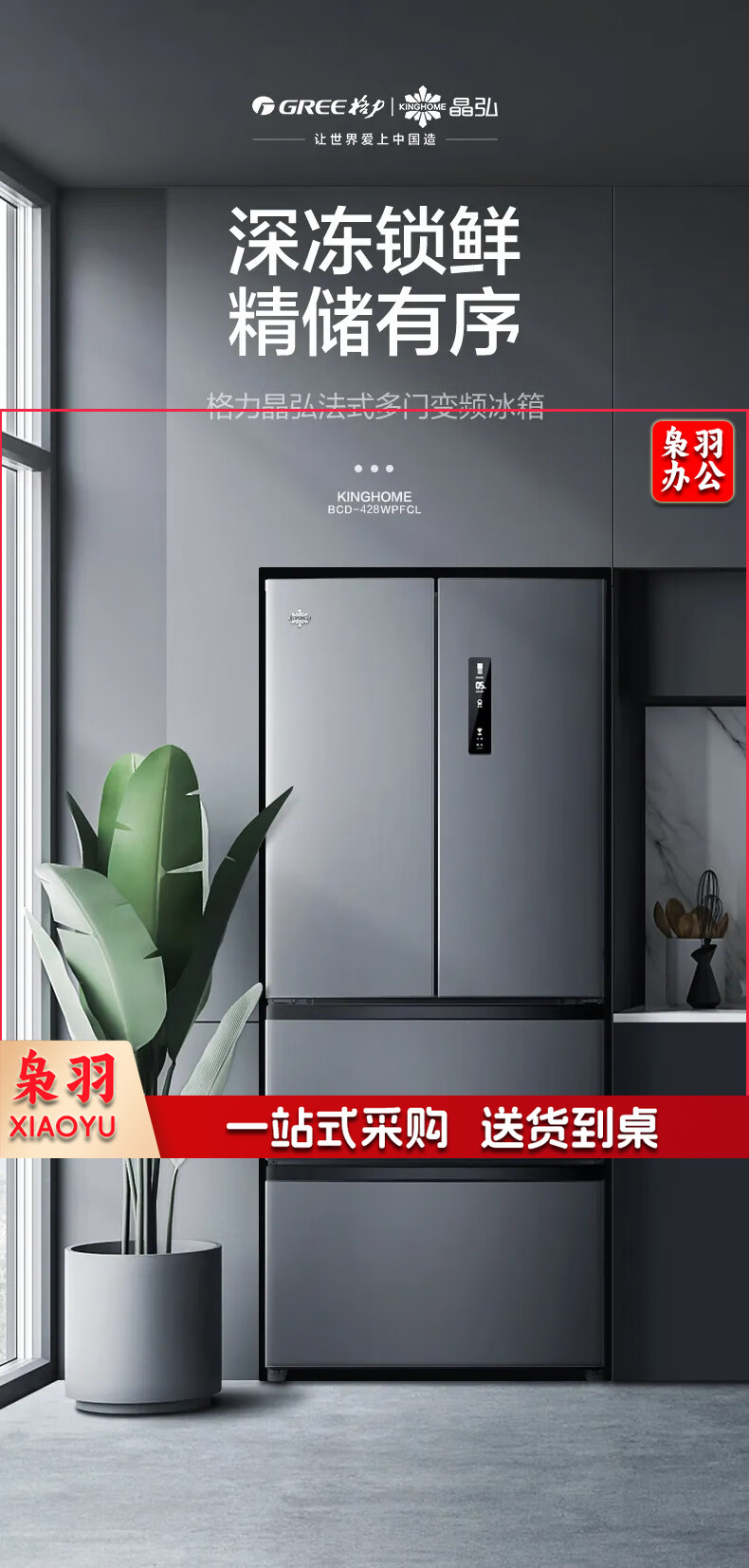 格力(GREE)晶弘家用法式多门冰箱428L深冻锁鲜BCD-428WPFCL/烟墨灰