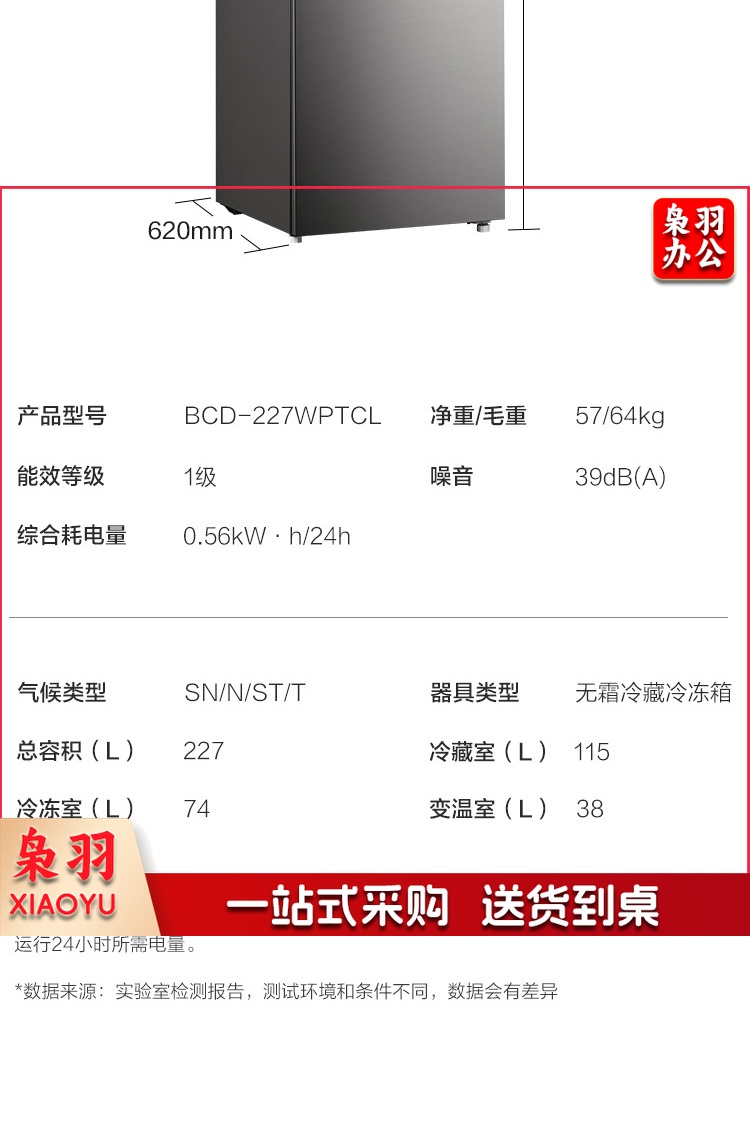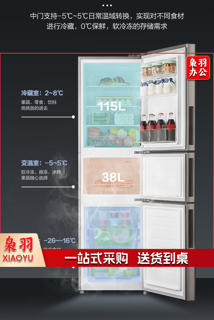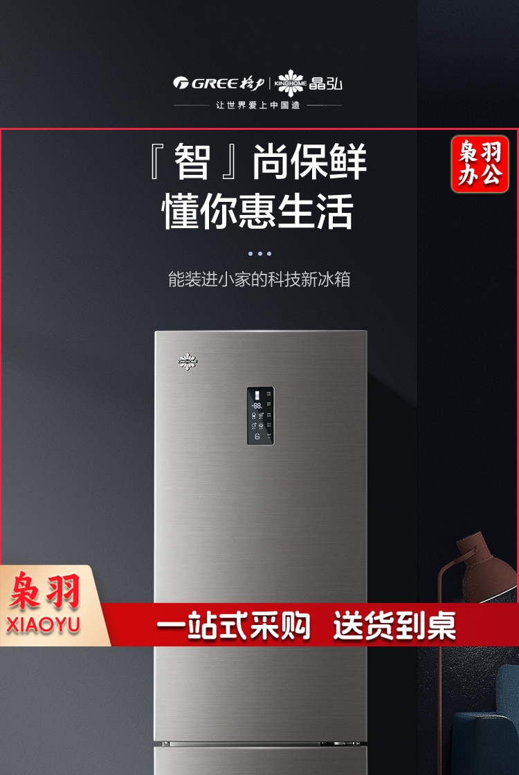 格力(GREE)晶弘227升三开门冰箱一级能效风冷无霜 长效净味低噪家用租房小型三门冰箱中门变温BCD-227WPTCL京