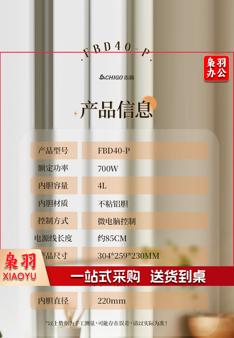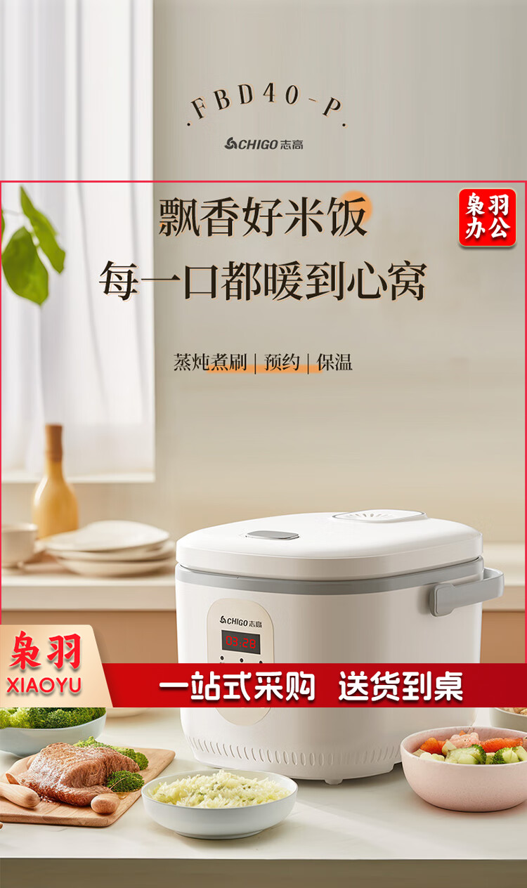 志高(CHIGO)电饭煲4L 家用电饭锅 24H智能预约蒸煮米饭锅压力煲 配蒸屉FBD40-P