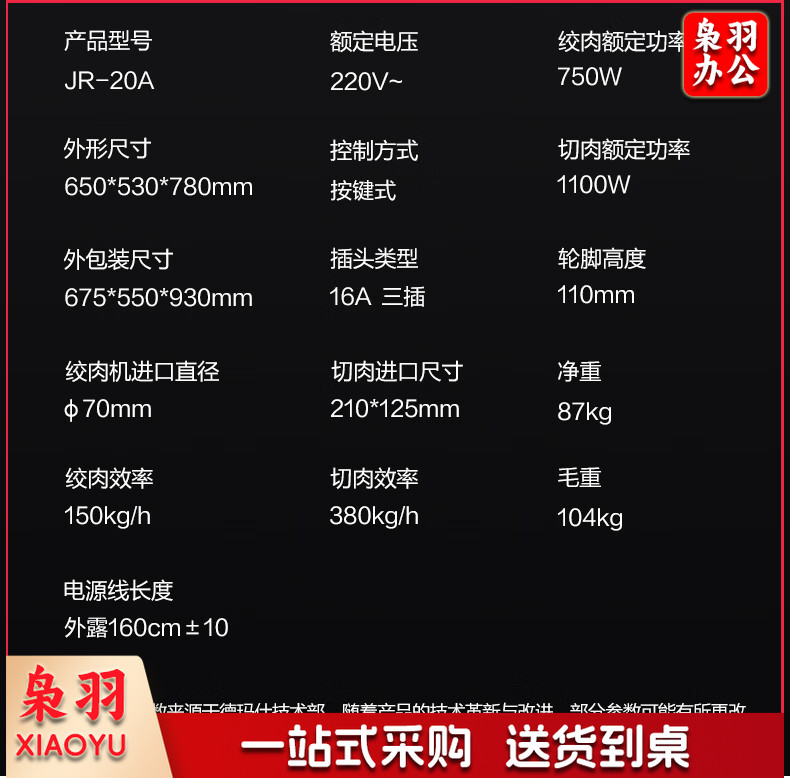 德玛仕(DEMASHI)商用绞肉机全自动多功能切肉机切肉丝切肉片食堂大型绞肉机商用绞切一体机切片机JR-20A