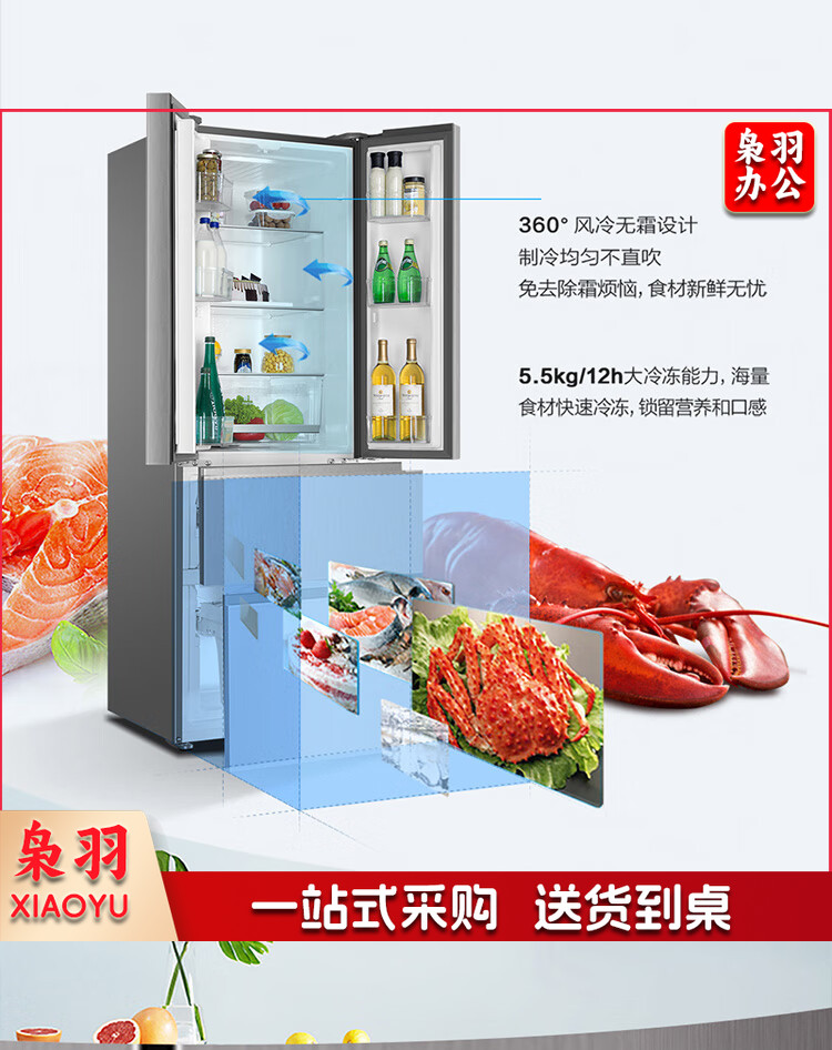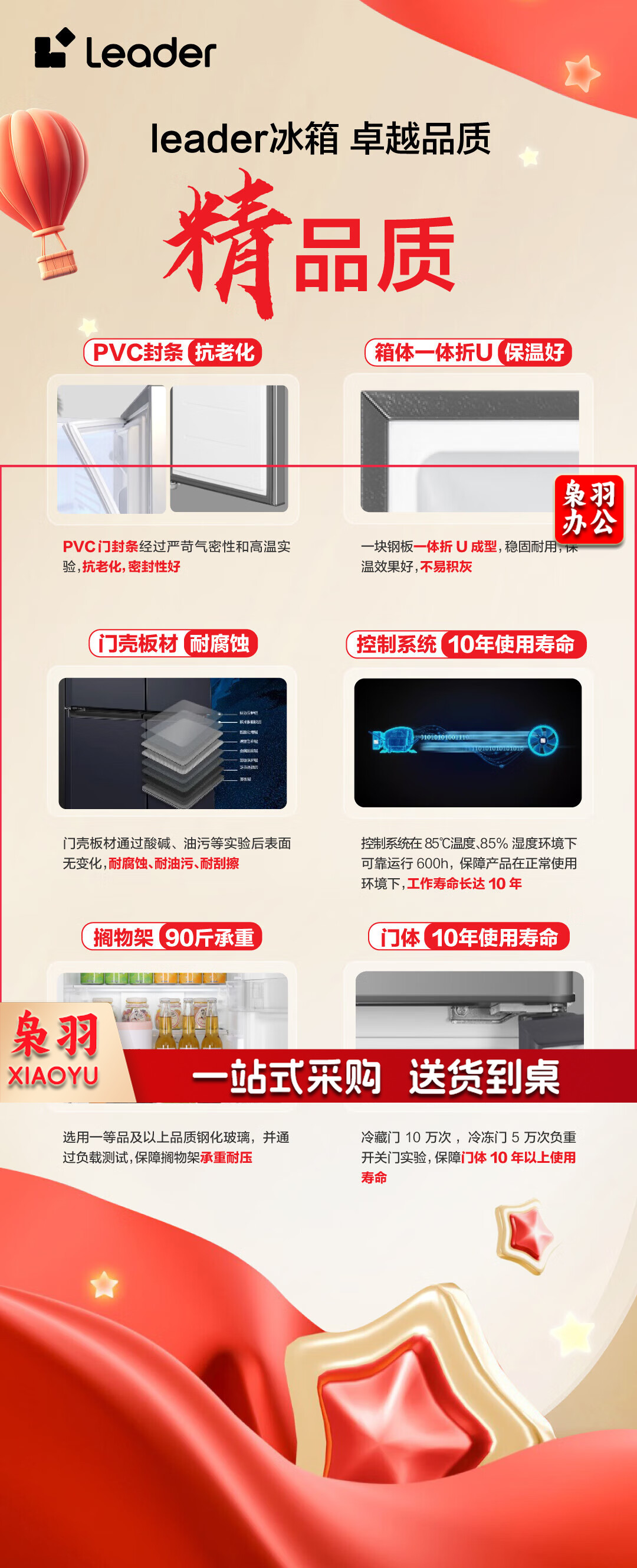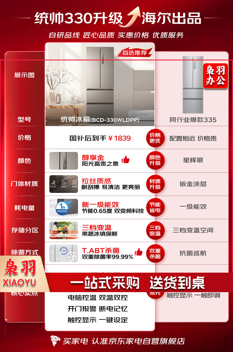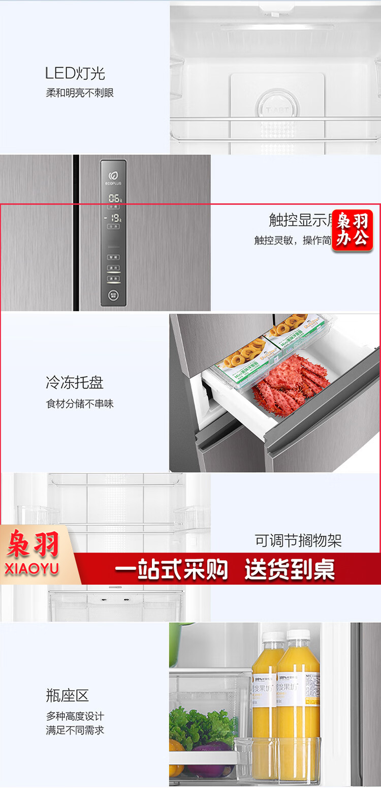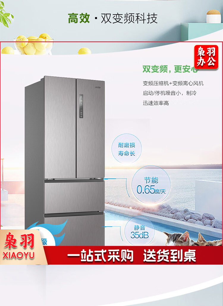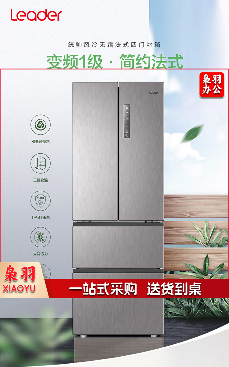 统帅(Leader)海尔出品330升法式多门四开门电冰箱小户型家用一级能效变频风冷无霜超薄BCD-330WLDPP