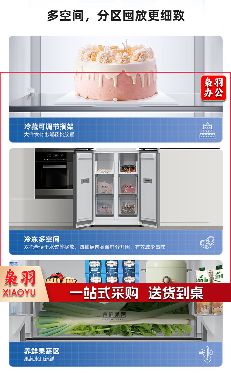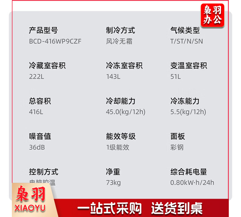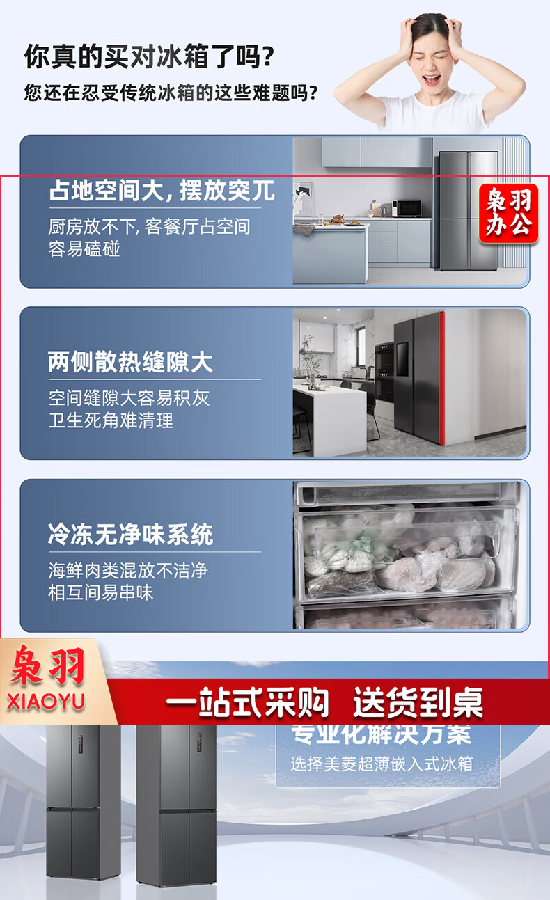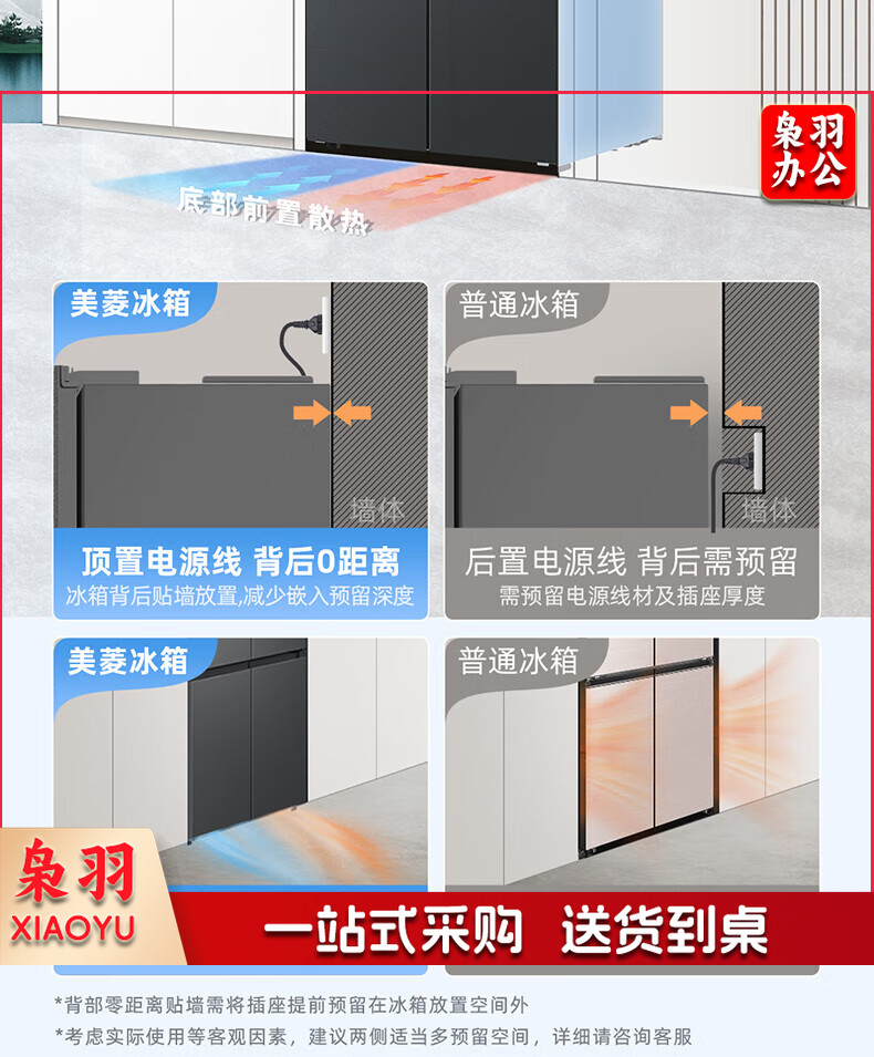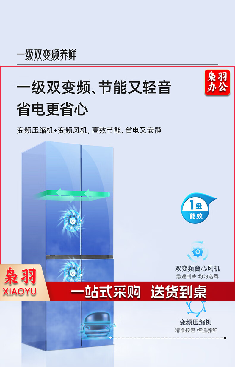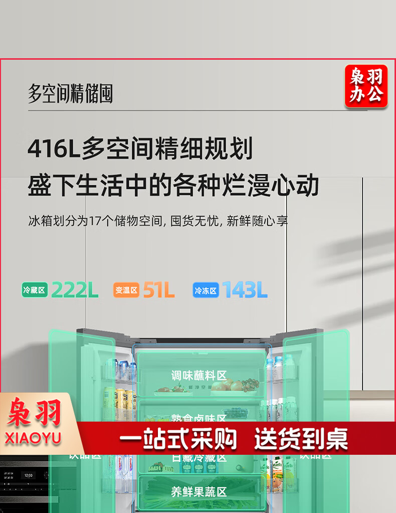 美菱(MeiLing)416升四开对开十字门超薄零平嵌入冰箱一级能效无霜家用大容量BCD-416WP9CZF