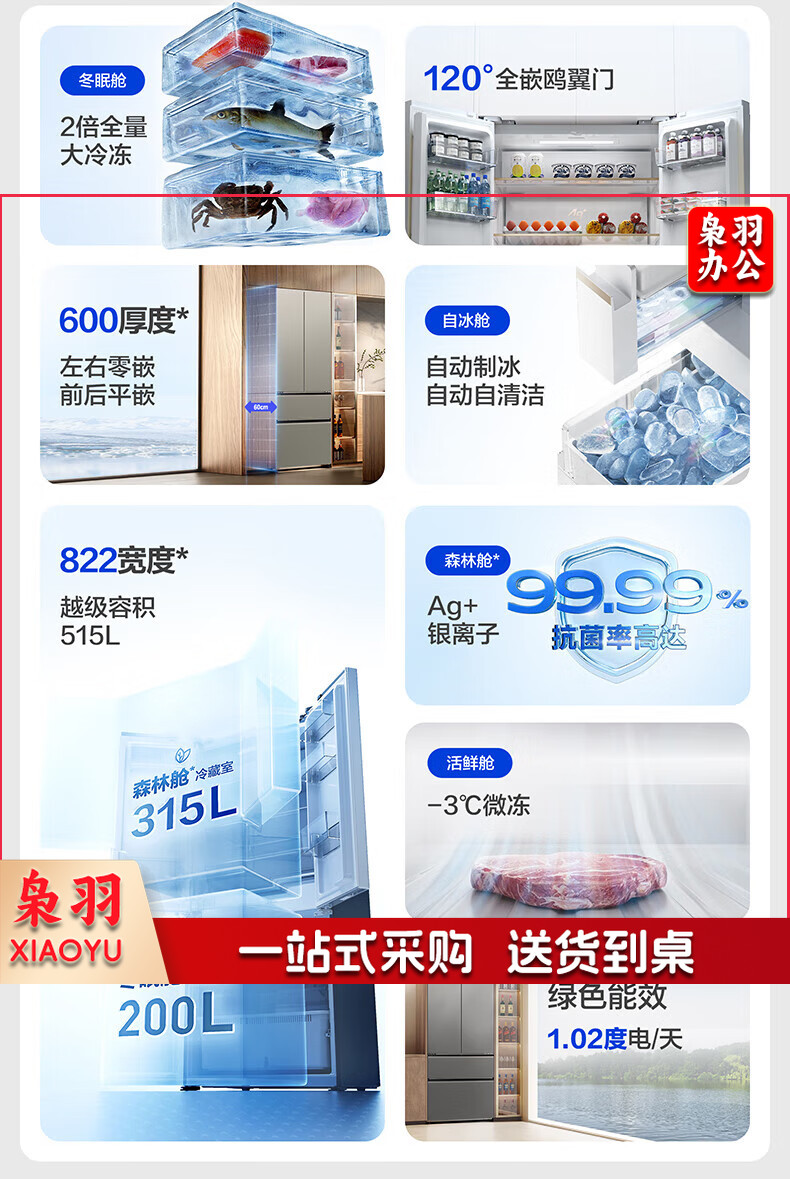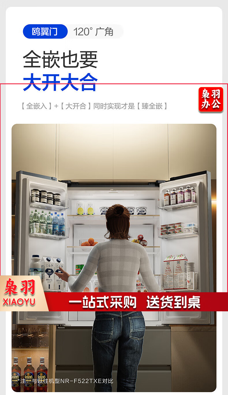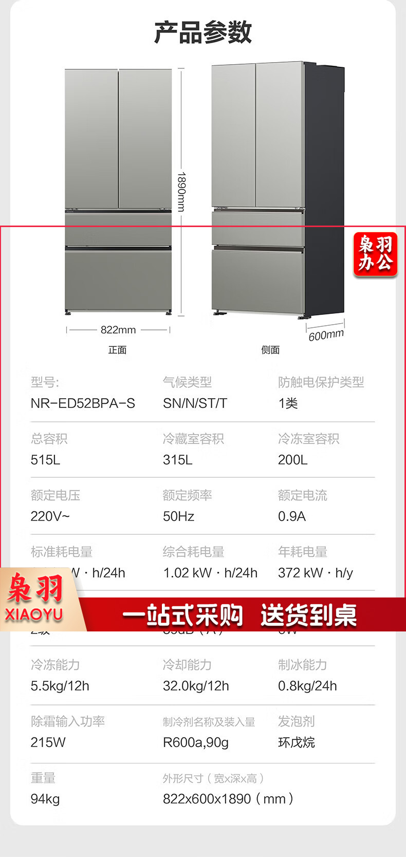 松下(Panasonic)【新品大海豹】515L法式多门电冰箱 60CM超薄全嵌入式 自动制冰双循环风道NR-ED52BPA-S