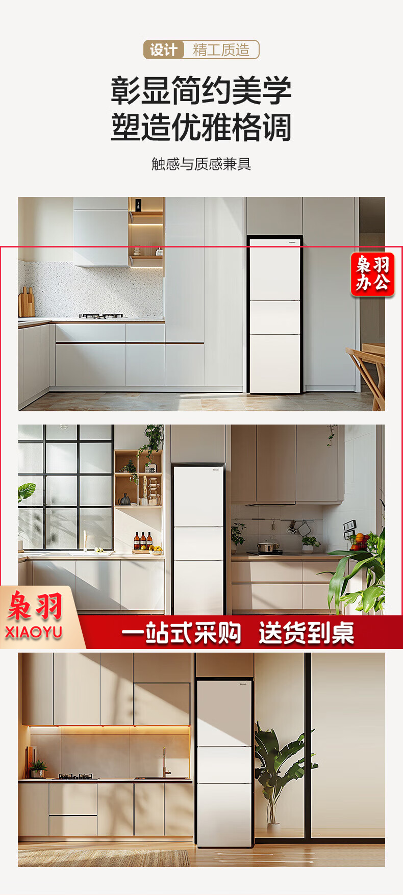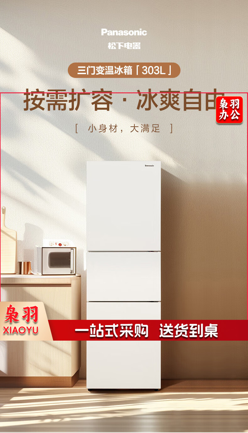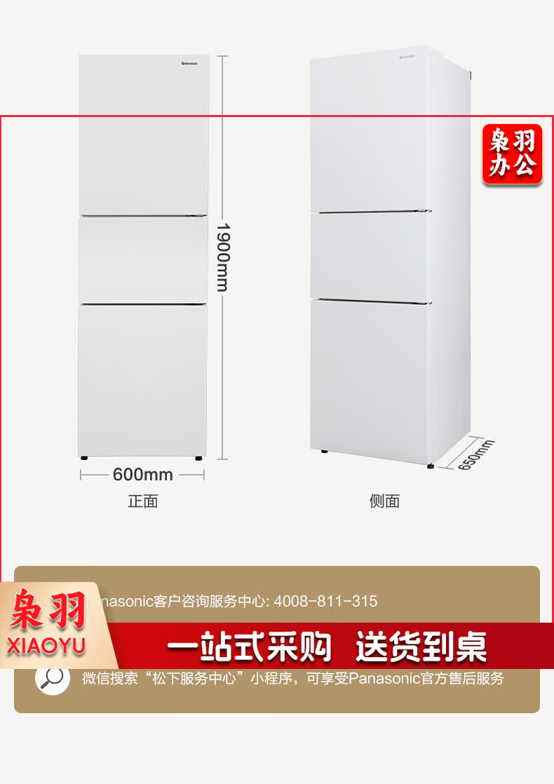 松下(Panasonic)303升家用三开门超薄嵌入式冰箱一级能效节能大冷冻无霜制冰智能小型家电NR-EC31AXB-W